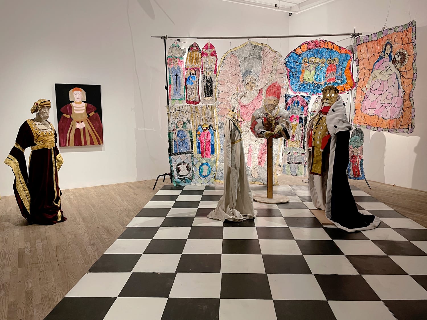 King Henry VIII of England is perhaps best known for founding the Church of England and having six wives, two of whom he executed. REX, Cate Giordano’s solo exhibition at Postmasters Gallery, recounts Henry’s brief, awkward relationship with his fourth wife, Anne of Cleves, whom he married sight unseen on the advice of his political advisor Thomas Cromwell. The two divorced within six months, largely because Henry found her to be less attractive than her court portrait by Hans Holbein suggested.