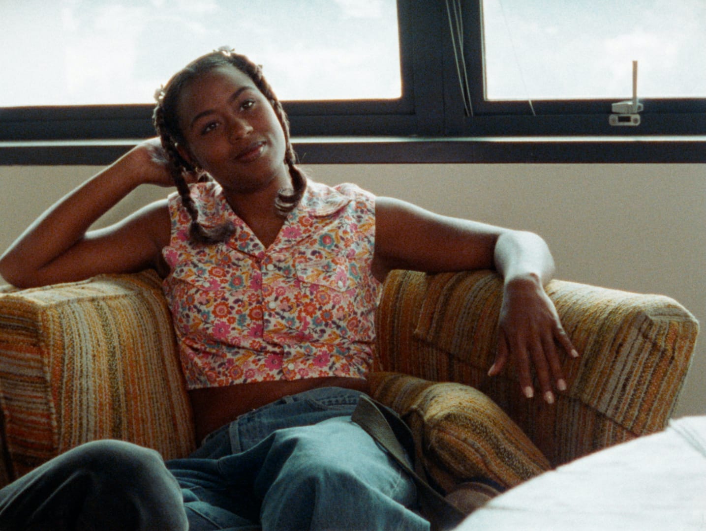 A friendly (if feisty) neighborhood flaneuse, Pica comes to the rescue of Tobi (April Barnett), whose abusive boyfriend ditches her in front of the house Pica shares with her mother. “If you want, I can call someone for ya,” Pica offers, her braids glowing under the street lamps. Reintroduced a few scenes later, Tobi’s ribbed sweater dress is swapped for an oversized hoodie and bandana that together conceal her gender. “Now when I walk down the street, White folks move out of the way,” Tobi explains. “And I don’t miss being called a ‘bitch’ just because I don’t talk to some boy and his friends rolling by in a car.”