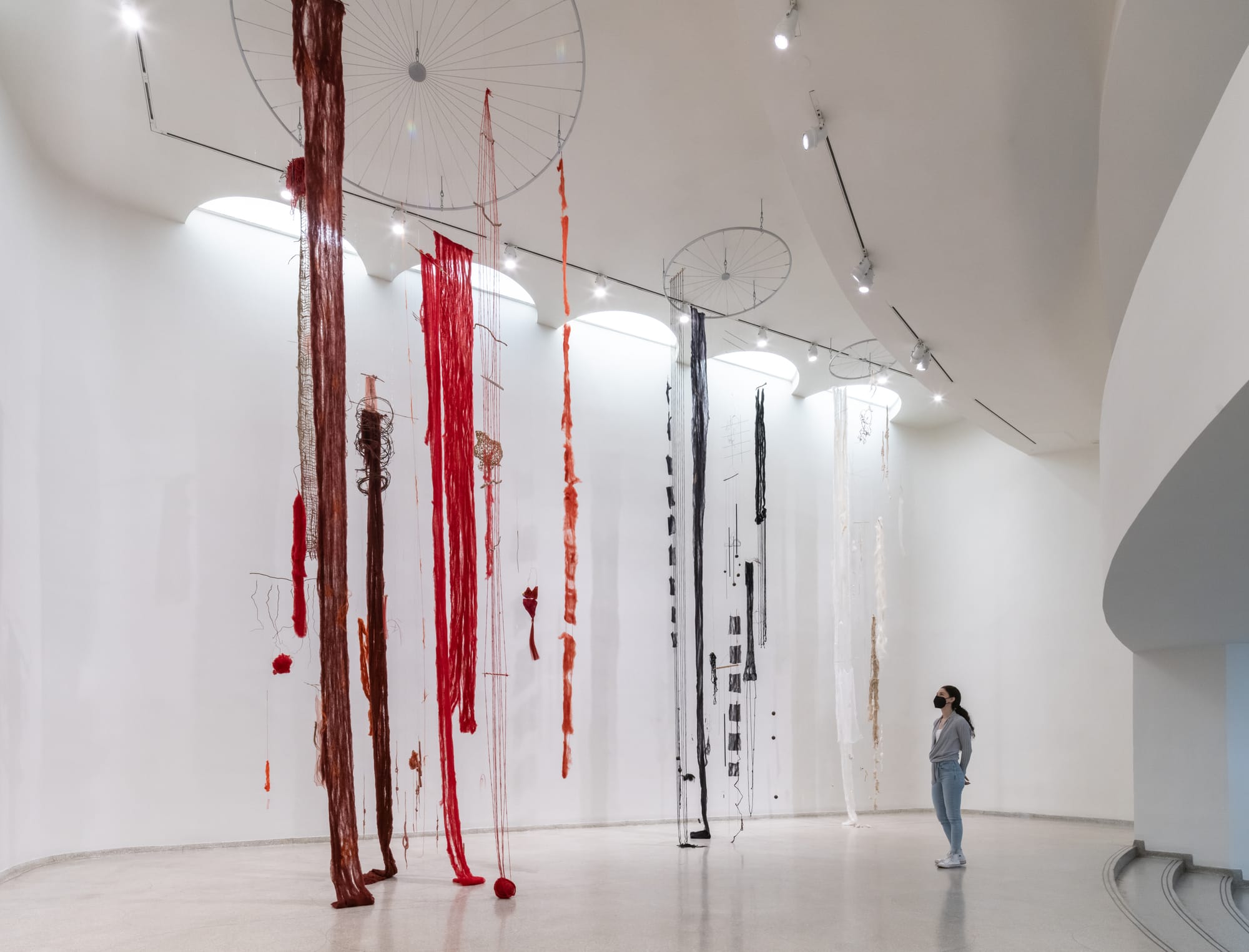 Cecilia Vicuña, Spin Spin Triangulene continues at The Solomon R. Guggenheim Museum (1071 Fifth Avenue, Upper East Side, Manhattan) through Sept 5. The exhibition was curated by Pablo León de la Barra and Geaninne Gutiérrez-Guimarães.