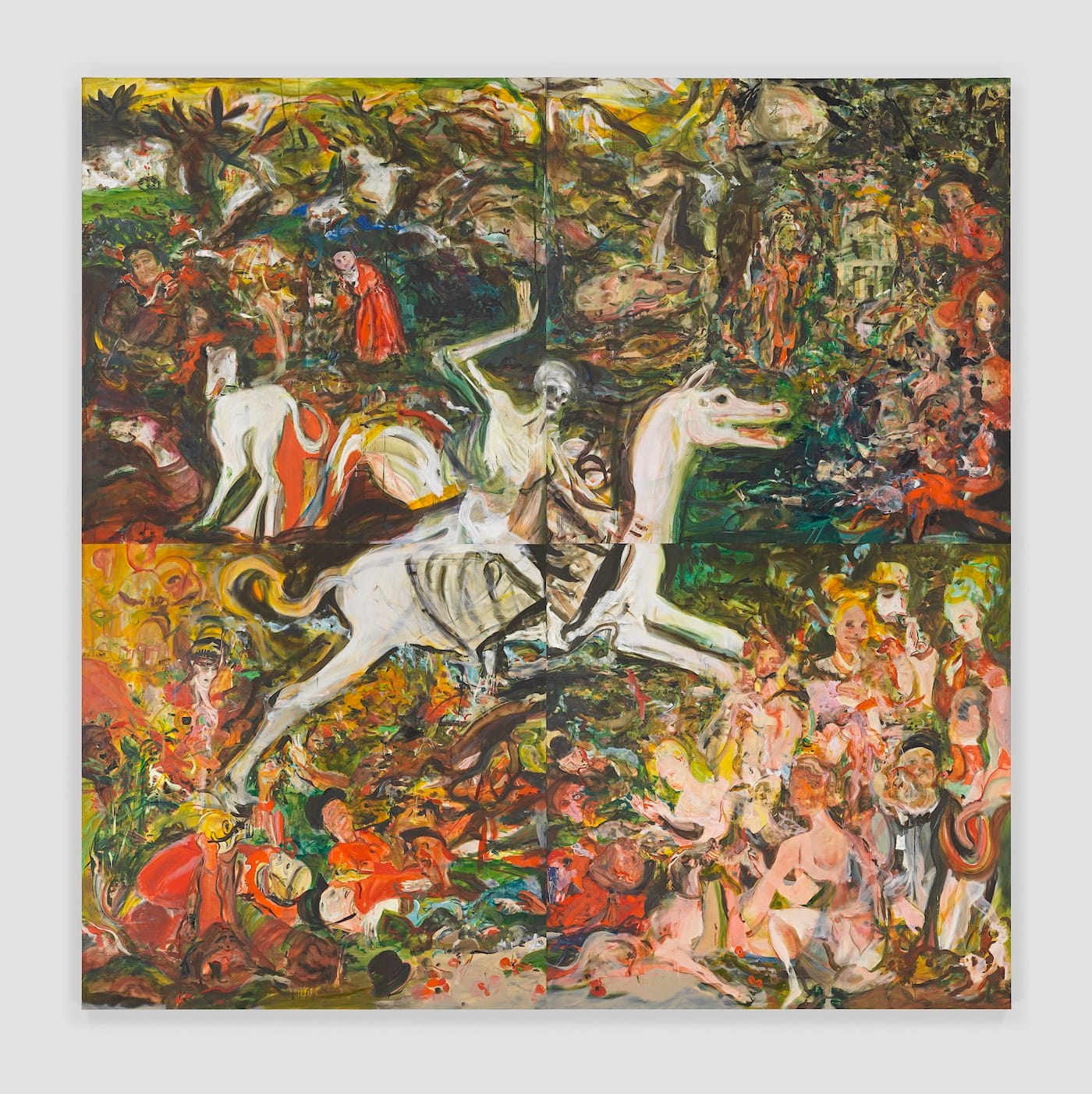 Being the guest of this place, there is an indirectness in her response — but the largest painting of all, in that Long Library to which I have already referred, inspired by “The Triumph of Death” (1446), a fresco in Palermo, shows that skeletal horseman thundering across the landscape, tossing aside all human frippery. So it must ever be.