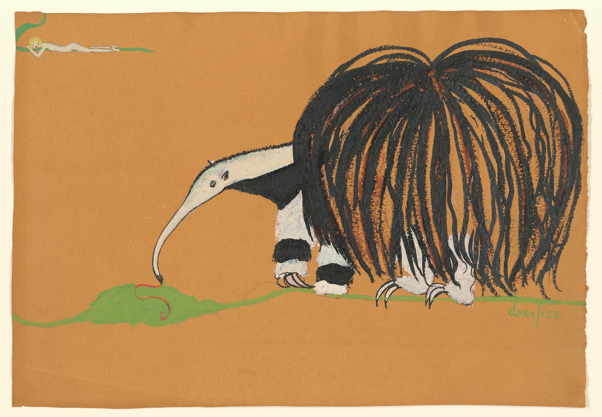 Greene collected equally fantastic art. She was ahead of her time in collecting Persian and Mughal art, especially after encountering Charles Hercules Read’s collection during a trip to Munich. She also brought works of modern art into the Morgan, such as Clara Tice’s “Anteater” (c. 1922).