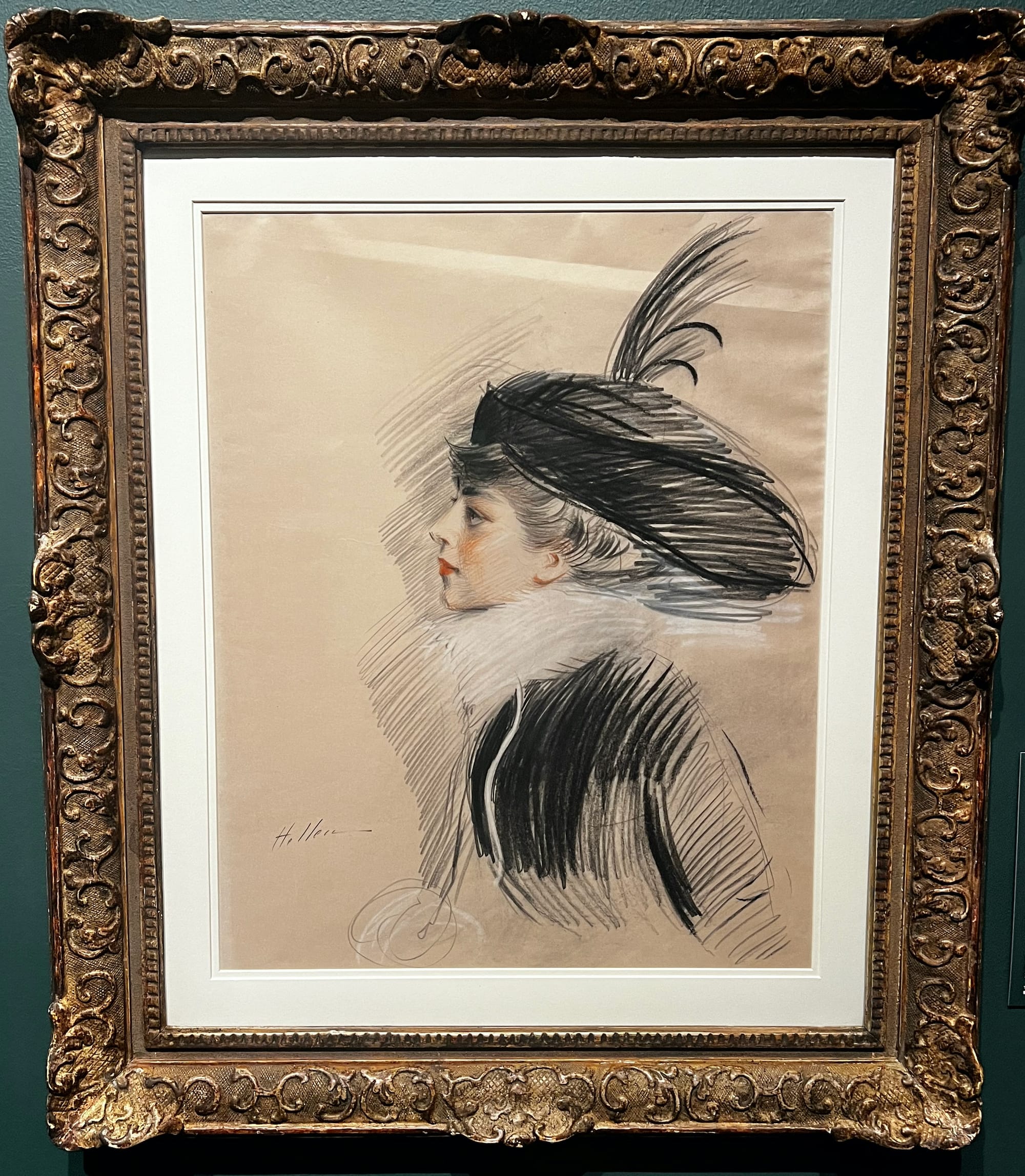 While Clarence H. White’s photographs represented a subtle authenticity in Greene that she found unsettling while passing as White, especially at the height of her career, other artists depicted her in more grandiose ways. French artist Paul César Helleu visited New York to design Grand Central Terminal’s original ceiling decoration and sketched a portrait of Greene as a White woman wearing a fashionable plumed hat. Greene was not a fan of the drawing, and Helleu was quoted in the New York Times expressing confusion about how she was a woman and a librarian.