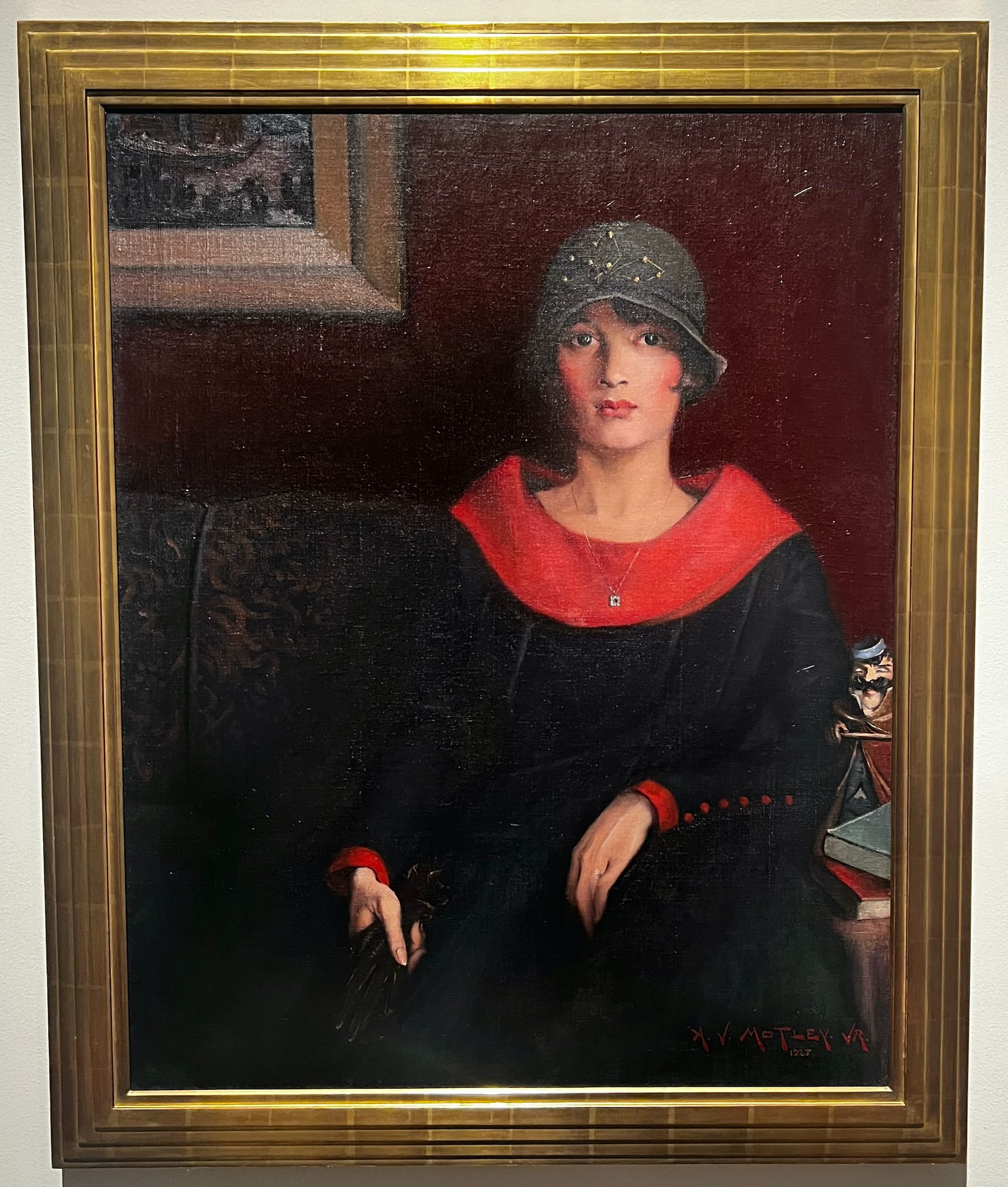 The subject of Greene’s racial passing is a complex one that is not easily approached by anyone who has not shared her experience. However, the curatorial team handles it with rigor and care. While it is impossible to know Greene’s precise thoughts and feelings, especially since she burned many personal papers and diaries, the exhibition shares a context for passing that elucidates the nuance of such a phenomenon. Archibald Motley Jr.’s “The Octoroon Girl” (1925) is one of three sister paintings in a series depicting mixed-race women whose socioeconomic status is determined in part by their proximity to whiteness. Carl Van Vechten’s portrait of author (and fellow librarian) Nella Larsen is on display next to a copy of her influential novel, Passing (1929), which addresses the psychological toll of passing. Within the gallery space dedicated to the subject, a screen plays clips from the films Veiled Aristocrats (1932) and Imitation of Life (1934), both of which depict racial passing.