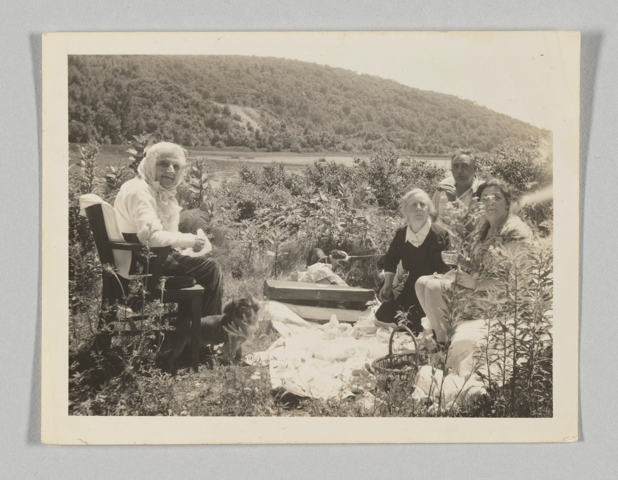 The first photograph on view comes from a series of portraits taken of Greene by Clarence H. White in 1911. She is posed in a studio wearing white gloves, her curly hair covered by a fashionable hat. Her racial ambiguity — olive skin and dark hair — is apparent beneath her balanced facial expressions, especially given what we know of her family from the introductory wall text. We also learn from the didactics that Greene was unhappy with White's photographs, in which her skin color is not lightened.