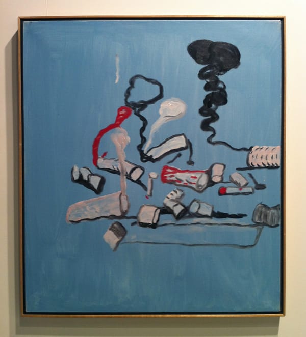 Philip Guston, "Looking" 1964, oil on canvas, 67 3/8 x 80 inches (which is reproduced in Irving Sandler’s book The Triumph of American Painting) (photo by Hrag Vartanian/Hyperallergic).Philip Guston, "Untitled" (1978), oil on canvas, 36 x 32 inches. Although Guston made a huge shift from abstraction to more representational imagery, he retained the gesture and the emphasis of his Abstract Expressionist roots.
