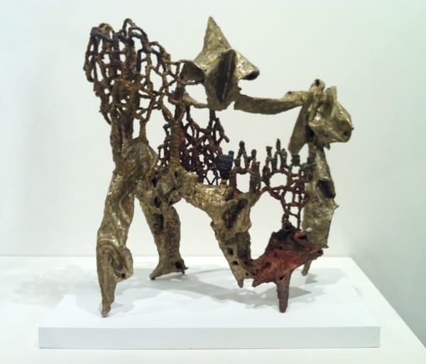 Ibram Lassaw (1913-2003), "Act Three" (1963), copper sheet covered in nickel silver, bronze, silicon bronze and phosphor bronze, 21 ¾ x 20 x 14 ½ inches. Legend has it that The Club was formed as a result of a group of artists meeting informally at Lassaw’s studio in the late fall of 1949.