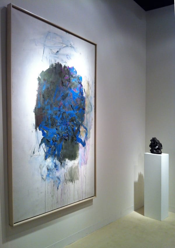 Joan Mitchell (1925-1992), “Rufus’s Rock” (1966), oil on cnavas, 76 5/8 x 51 1/8 inches with Willem de Kooning (1904-1997), “Untitled (Head #4)” (1973), bronze, cast in 1981, 10 ½ x 9 x 11 ½ inches