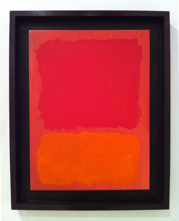 An enormous Sam Francis, "Untitled (SF 58-247)" (1958), gouache and paper laid down on canvas, 59 ½ x 79 ¾ inchesMark Rothko (1903-1970), "Untitled (Red and Orange on Salmon)" (1969), acrylic on paper mounted on canvas, 25 ¾ x 17 ¾ inches.