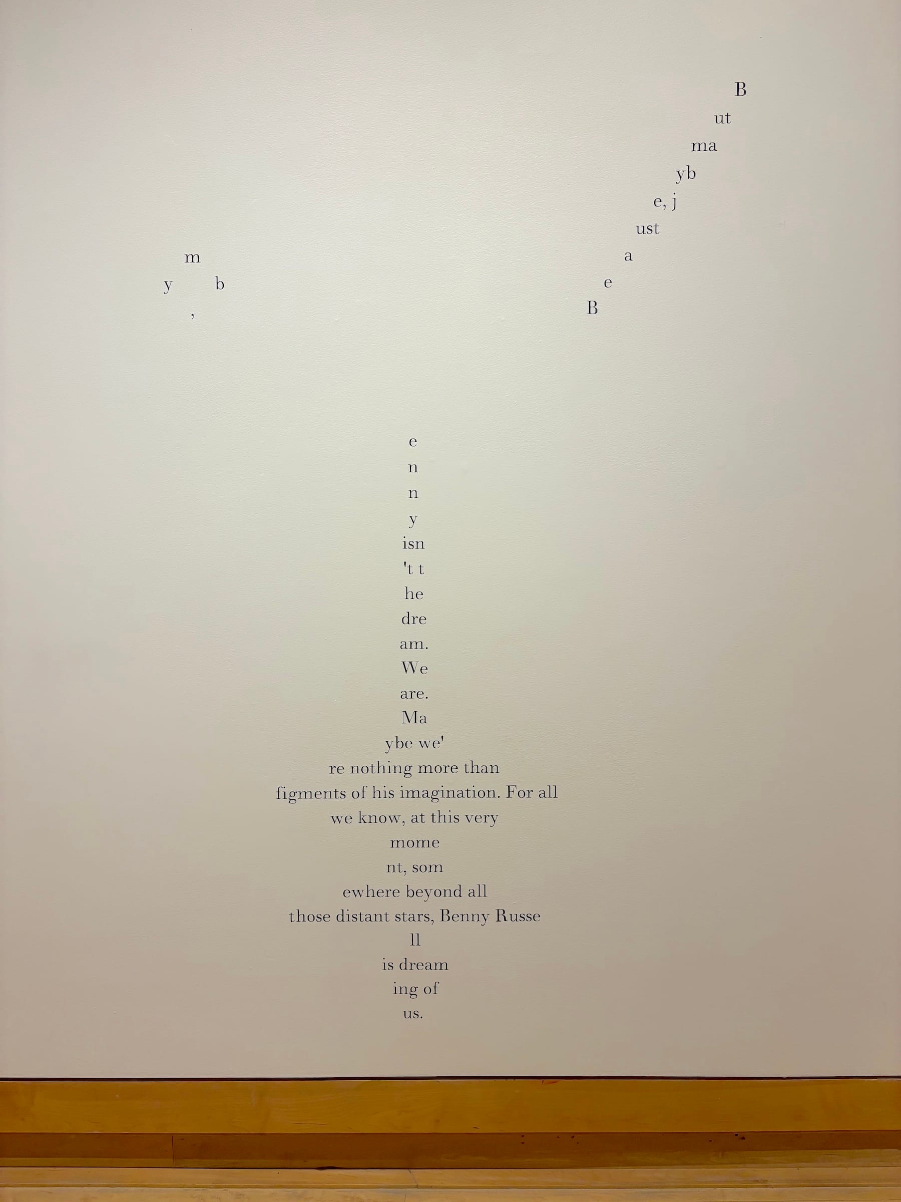 Still, I wondered, in my own fix-it on the exhibition, what would happen if the show opened with “You are the dreamer, and the dream" (2018) by Sky Hopinka (Ho-Chunk Nation/Pechanga Band of Luiseño Indians), a calligram tucked away on one side of the Main Gallery? It’s an arrangement of a Deep Space Nine speech from its highly regarded “Far Beyond the Stars” episode, in which the space station’s Black Starfleet commanding officer imagines he’s a struggling science-fiction author in the 1950s whose story about a Black captain leading a space station is rejected. Hopinka arranges the impassioned speech into the shape of a Ho-Chunk burial mound. It faithfully interprets how fans hold close Star Trek and its “infinite diversities.”
