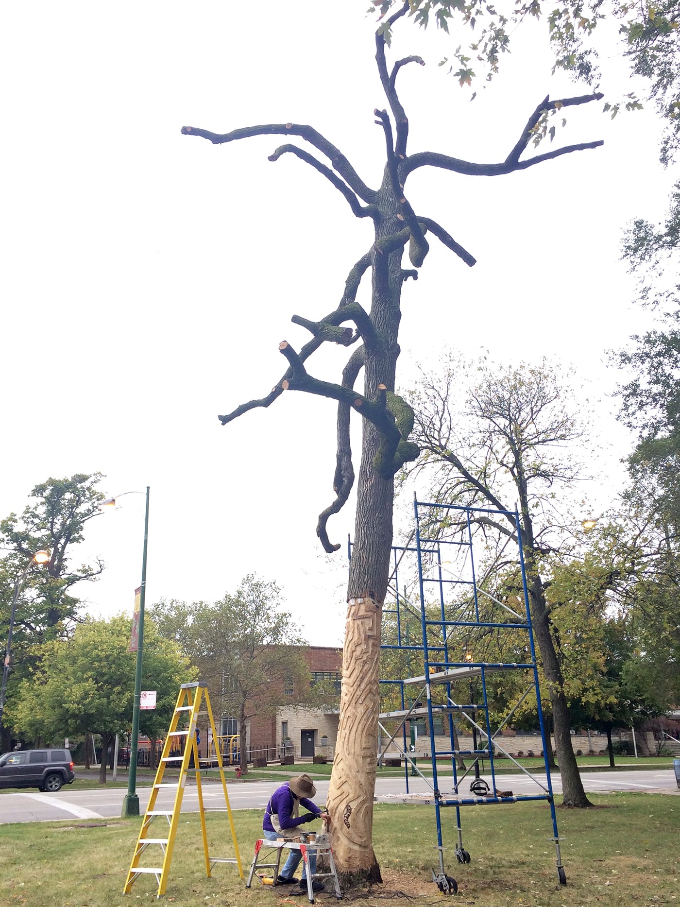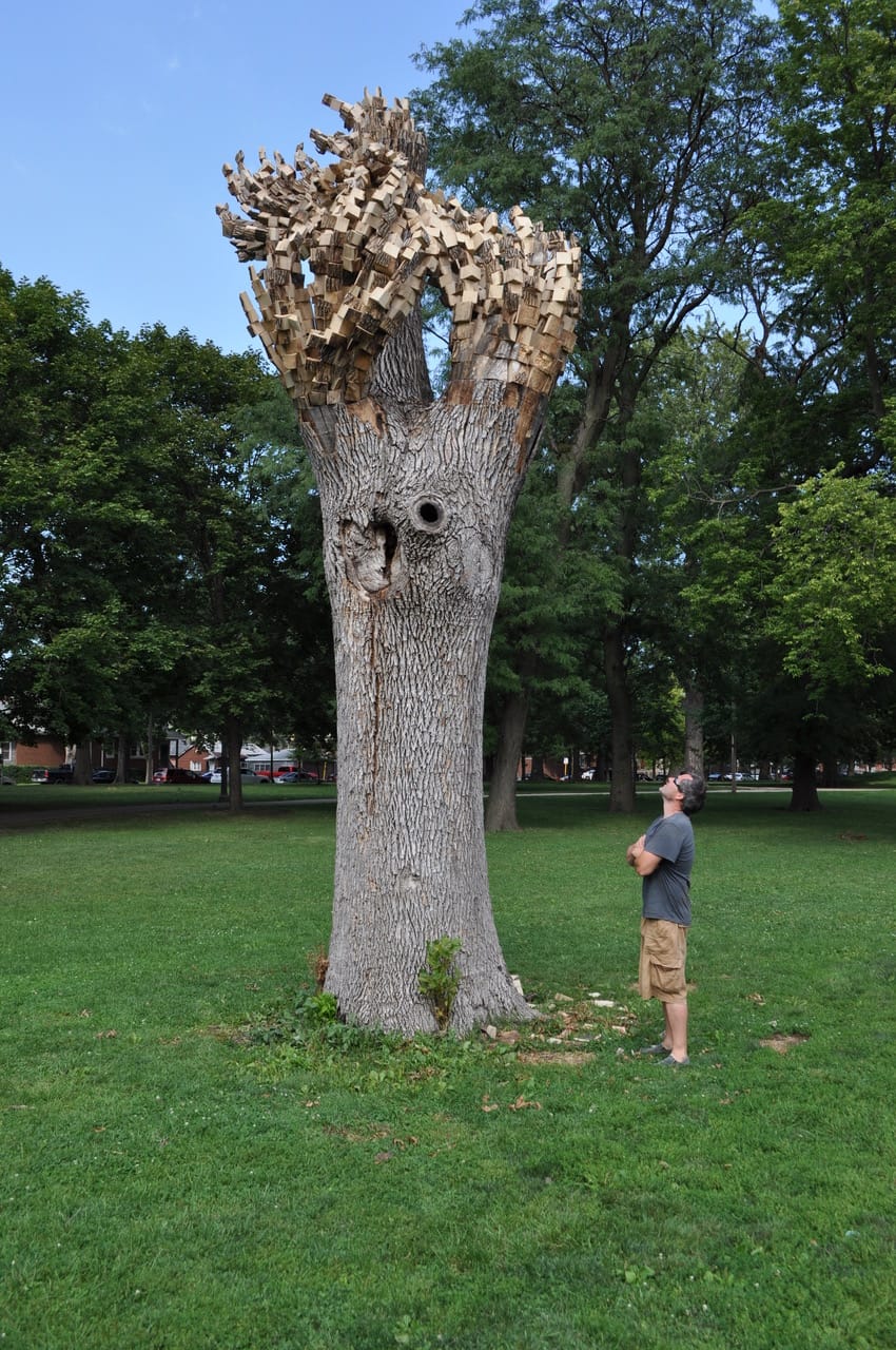 Ash trees make up about 17% of Chicago’s street tree population, and city crews are working to slow the infestation while treating affected trees. In the meantime, the Chicago Tree Project will continue searching for artists to assign trees that are structurally stable. Artists who are interested should look out for Chicago Sculpture International’s national call for proposals in February. Submissions are then sent to the Chicago Park District, whose team makes the final selections.