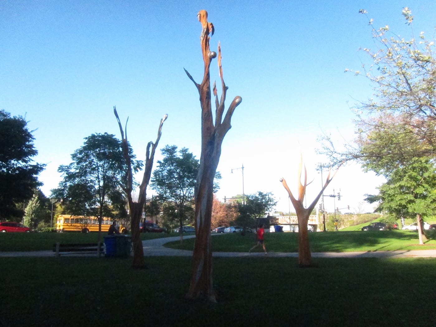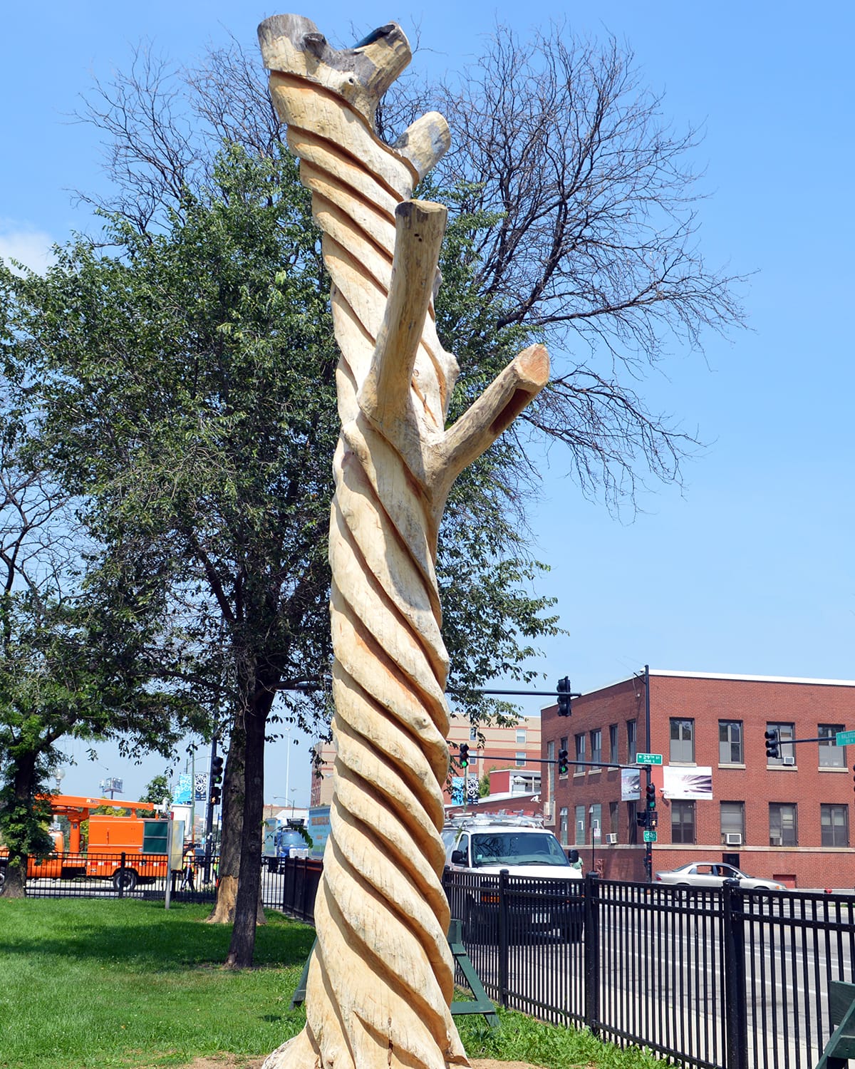 “Because of global warming, this pest has found a more favorable environment than it has had in the past,” Christine Perri, Outdoor Exhibitions Chair of Chicago Sculpture International, told Hyperallergic. “We see this project as extending the life of these trees that normally would have been removed when they were determined to be no longer viable.”