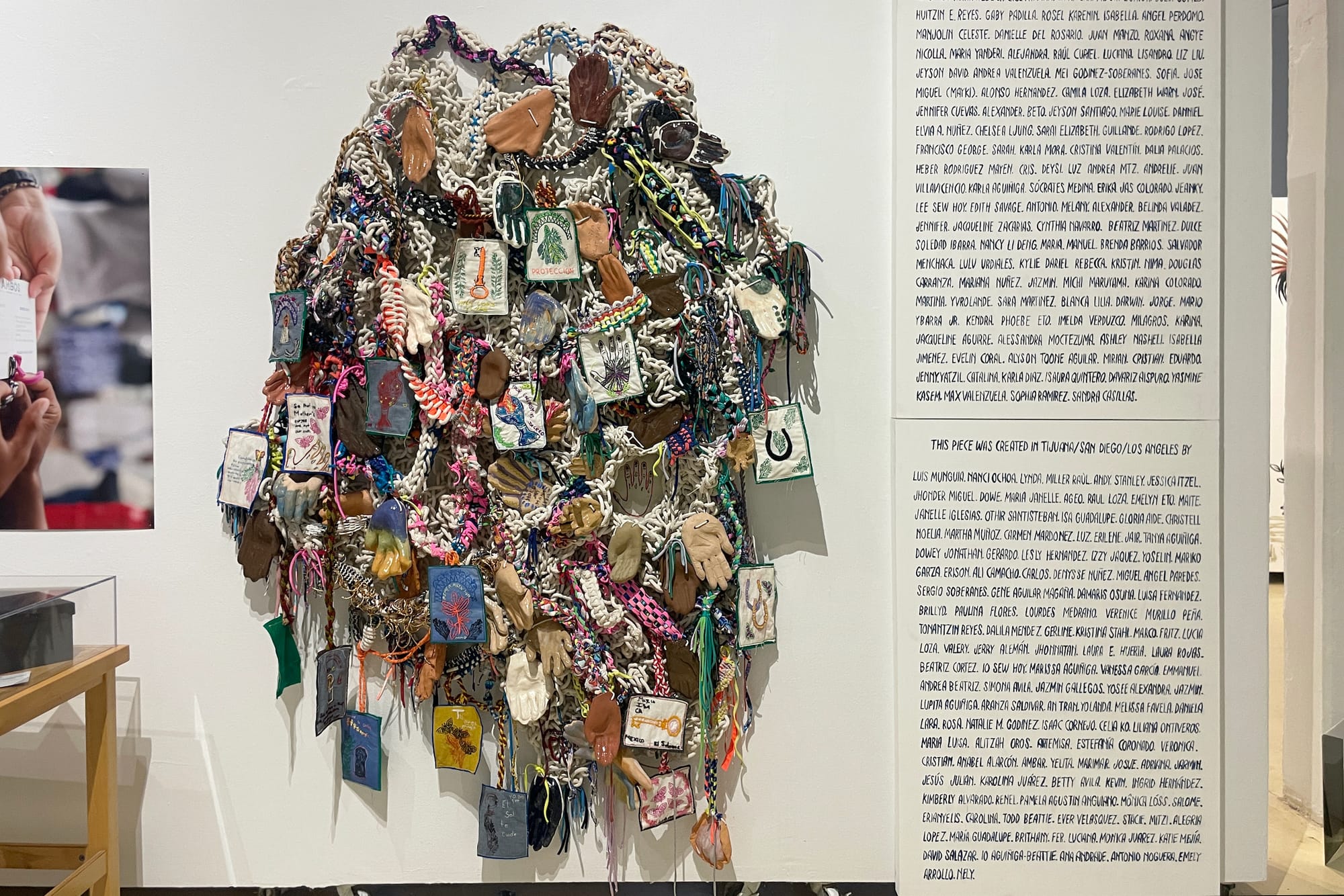 Today, BAW/TEF’s spirit continues. Artist and activist Tanya Aguiñiga led “Border Quipo/Quipu Fronterizo” (2016–18), part of the AMBOS (Art Made Between Opposite Sides) Project. For her performance, the artist and others roamed between cars and pedestrians on both sides of the San Ysidro border crossing, speaking to commuters trapped in the gridlock, and handing them two strands of thread to tie into a knot. Aguiñiga collected these knotted threads and assembled them into a quipu, an ancient Incan recording device, hanging it on a billboard for all the commuters to see. As people completed the task, she initiated conversations about the border and immigration, and thus the quipu also became a stand-in for oral history.