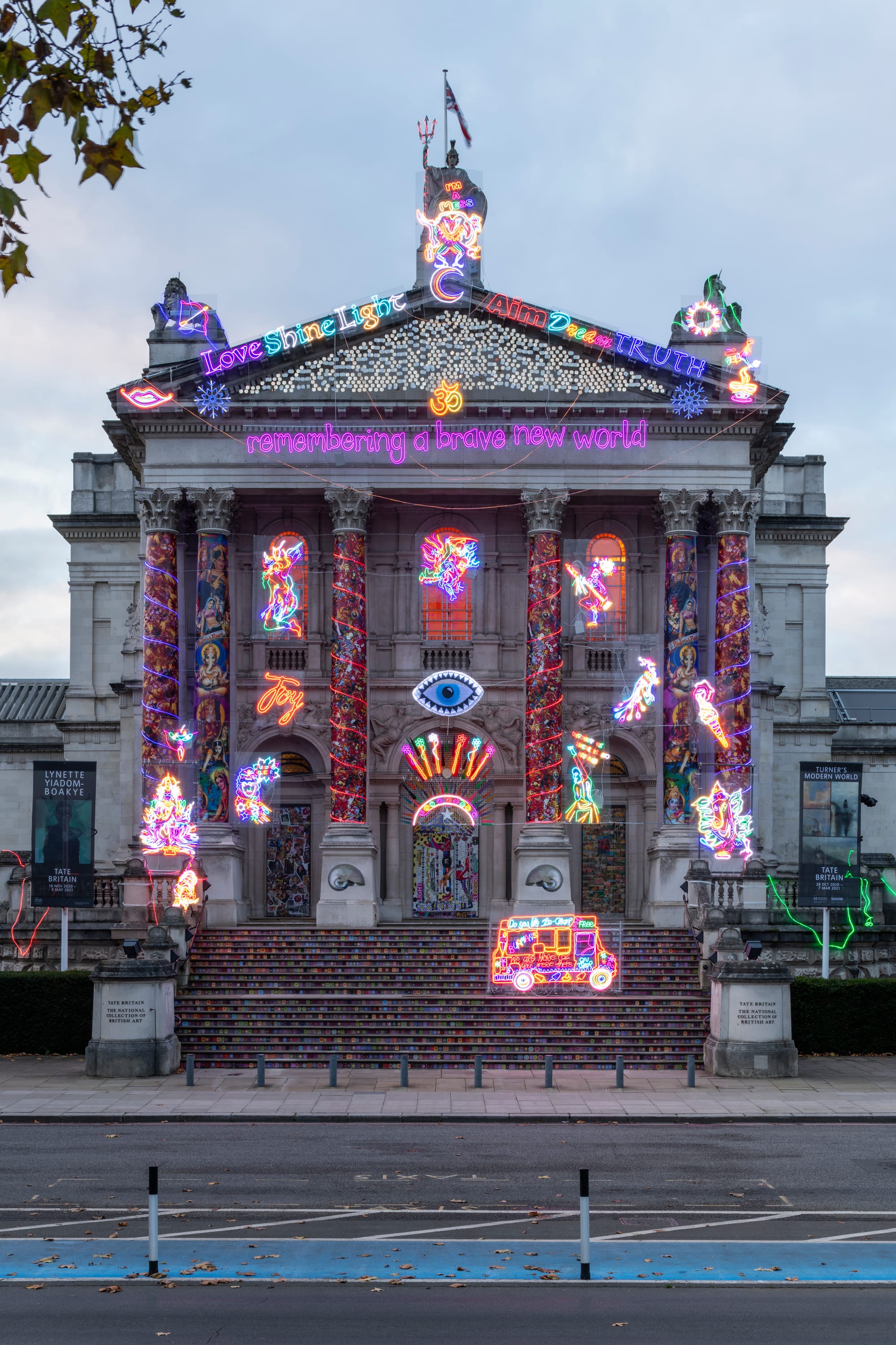 The work of London-based multidisciplinary artist Chila Kumari Singh Burman is always immersive. Her latest work, remembering a brave new world, has literally lit up the Tate Britain’s classical façade as part of the museum’s annual Winter Commission series.