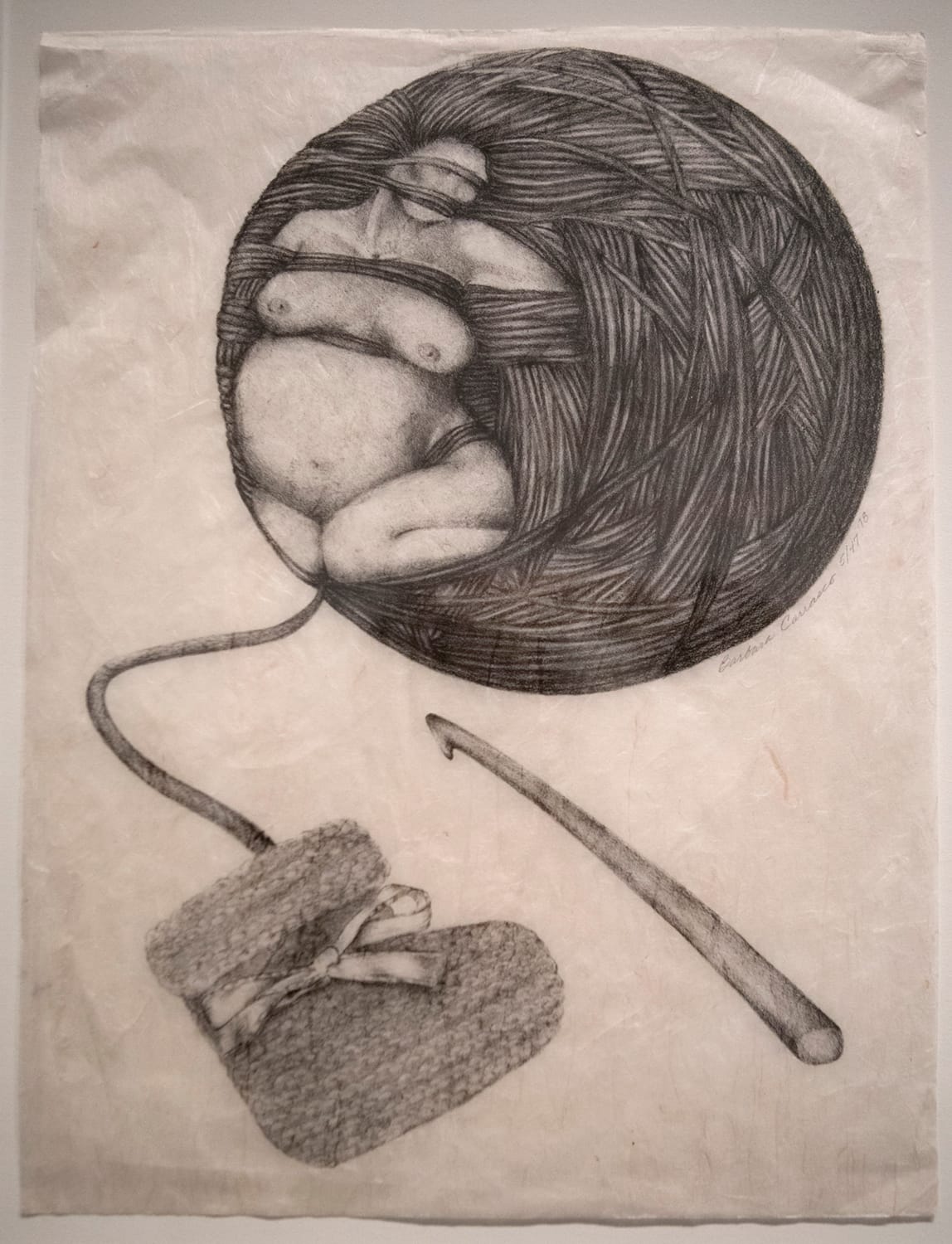 Barbara Carrasco, “Pregnant Women in a Bail of Yarn” (1978)