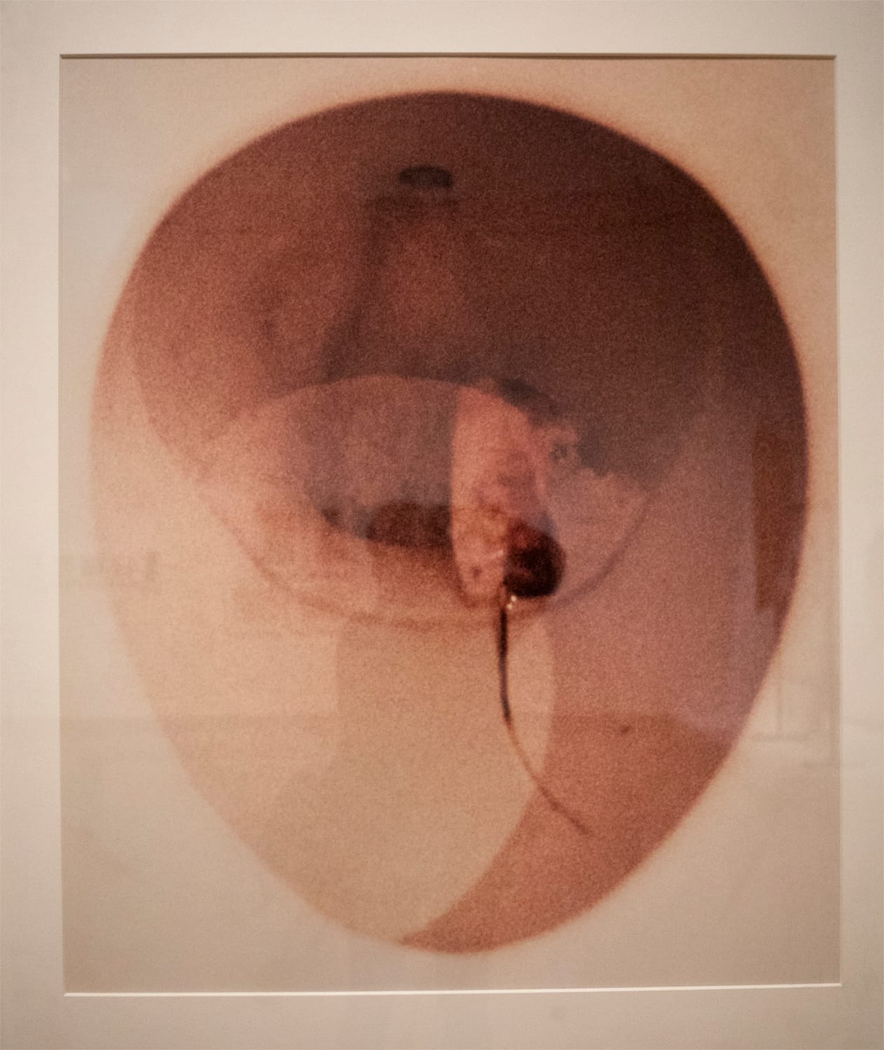 There are Sophie Rivera’s two photographs of a blood-soaked tampon floating in a toilet bowl, leeching red into the surrounding water, from the series Rouge et noir (Red and black) (1977-78).