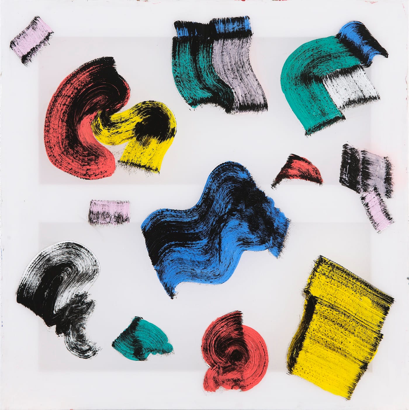 Bonnefoi’s strategies seem to condense a few aspects of the work of his American contemporaries: the objectification and theatricalization of a gesture devoid of pathos of David Reed; the deconstructing strategies of Jonathan Lasker — even if Lasker’s use of exaggeratedly thick brushstrokes seems closer to Dunoyer; the collaged elements in Philip Taaffe’s paintings; and the interplay between the front and back in the work of Craig Fisher. Other related artists include Max Estenger, Charles Spurrier, James Hyde, Joe Fyfe, Tariku Shiferaw, and Lauren Luloff. It is a tantalizing proposition to imagine a group show where these different voices could be brought together in dialogue with Bonnefoi’s work.