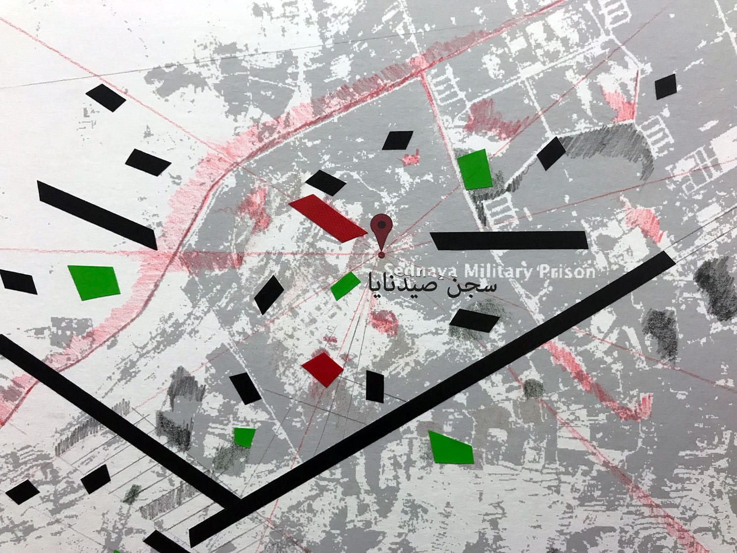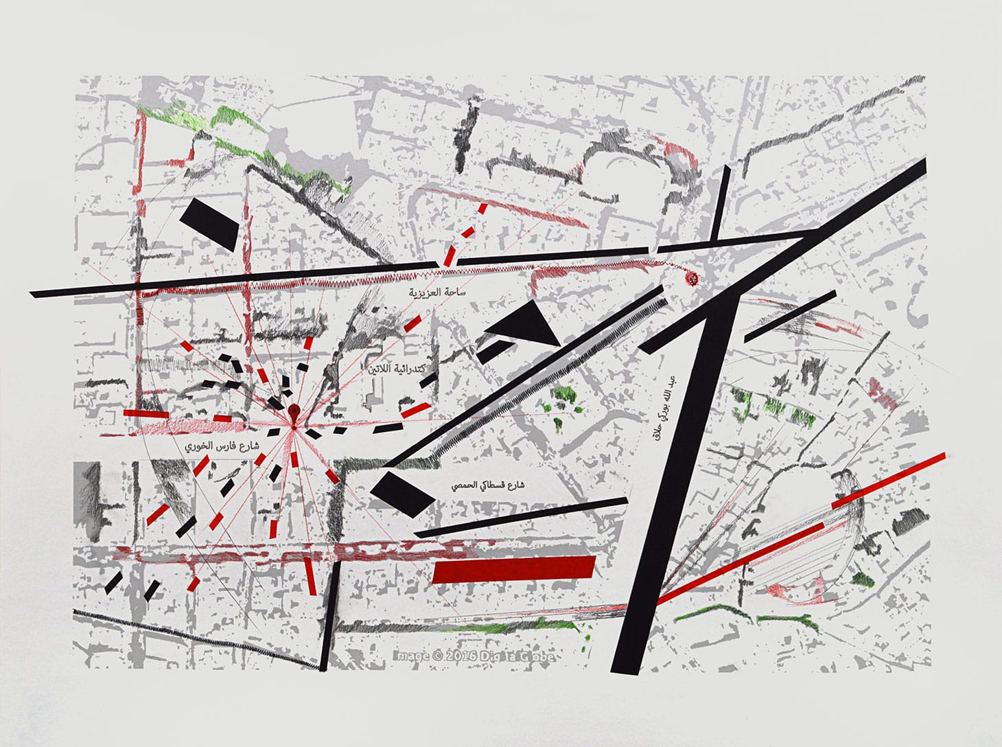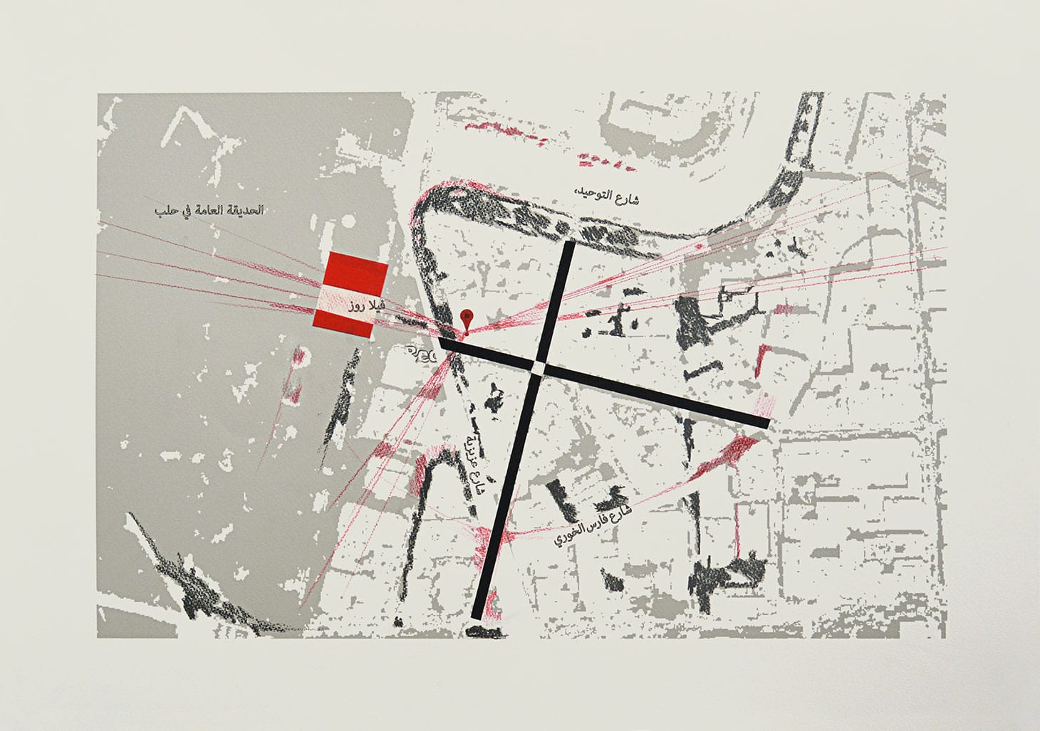 CG: Maps, urban planning, and architecture have been a topic in my work for a while, even before this series of works on Syria. In this case, working with the topic of piecing together memory through location, maps point to a forensic investigation of our family history and tragedies. I also look at maps as I’m interested in rebuilding especially after war and how we define ourselves in relation to the built environment around us where buildings in the urban context interact with one another and allow individuals to create a narrative of who they are — past, present, and future.