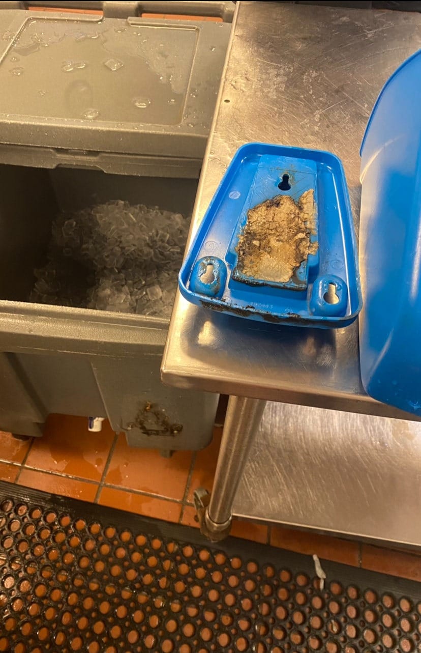 While workers struggle to keep up with volatile schedules, Squitire said a fruit fly infestation by the bar and dish stations has gone unchecked, and what appears to be mold is growing in the kitchen. Photographs taken by workers at the theater, acquired by Hyperallergic, show apparent fungal growth in an ice box, a receptacle used to hold a scoop for ice, and around machinery.