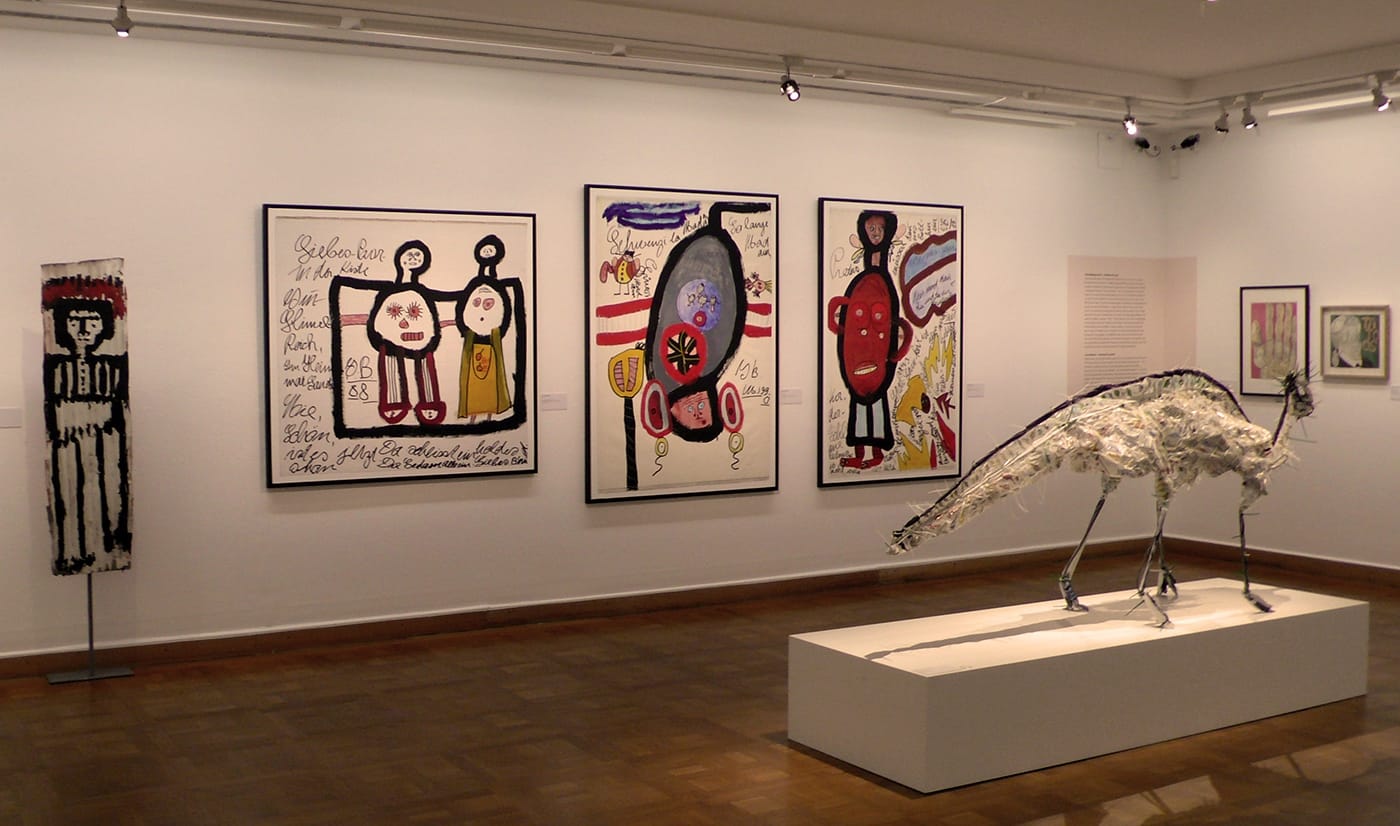 Co-organized by the Kunstforum Wien’s director, Ingried Brugger, and Hannah Rieger, a Vienna-based expert on art brut and outsider art who has amassed one of the most significant collections of these related genres in Europe, Flying High looks back chronologically at the history of the genre dubbed “art brut” (literally, “raw art”) by the French modern artist Jean Dubuffet in the 1940s. The term refers to the direct-from-the-heart creative impulse, unfiltered by theory, that can be felt in the works of self-taught visionaries situated by choice or by the force of circumstances on the margins of mainstream society and culture.