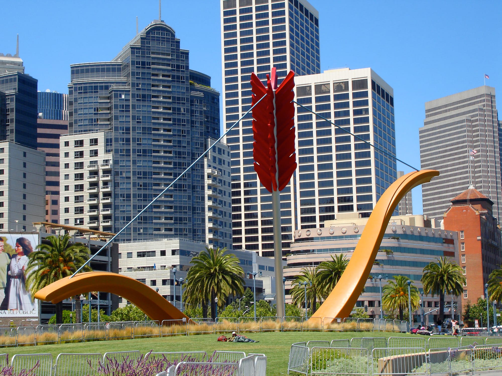 Many of Oldenburg’s later works were produced in collaboration with his second wife, Coosje van Bruggen, whom he married in 1977 (she died in 2009). Their joint creations include huge shuttlecocks in Kansas City; an upside-down ice cream cone in Cologne, Germany; and a bow and arrow in San Francisco’s Embarcadero.