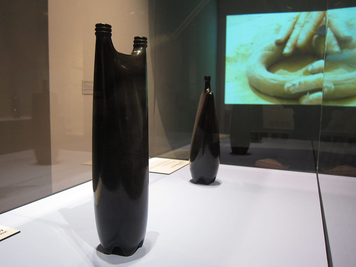 Jami Porter Lara's slick, black sculptures, currently on view at the National Museum of Women in the Arts, reframe how we see the ubiquitous plastic water bottle.