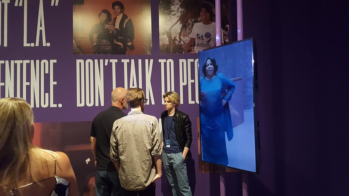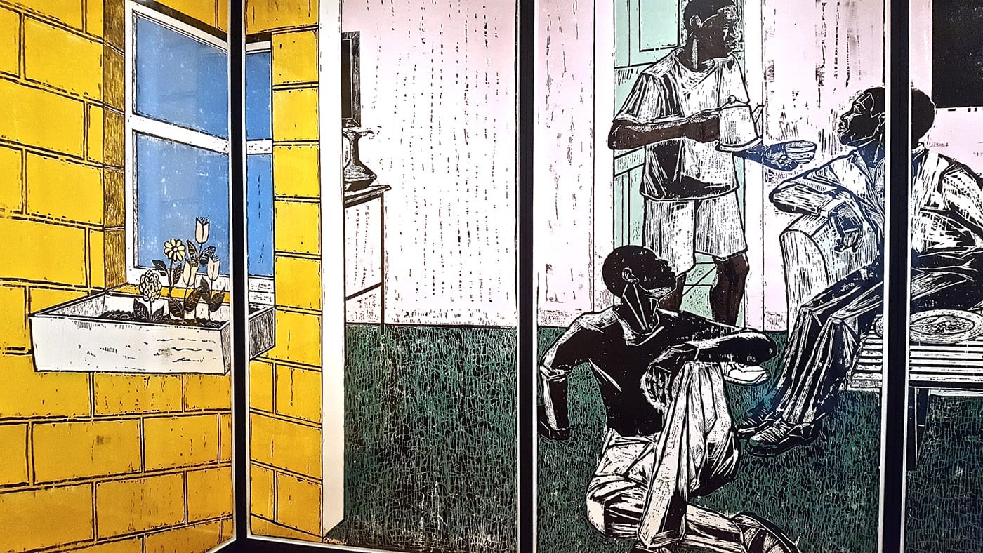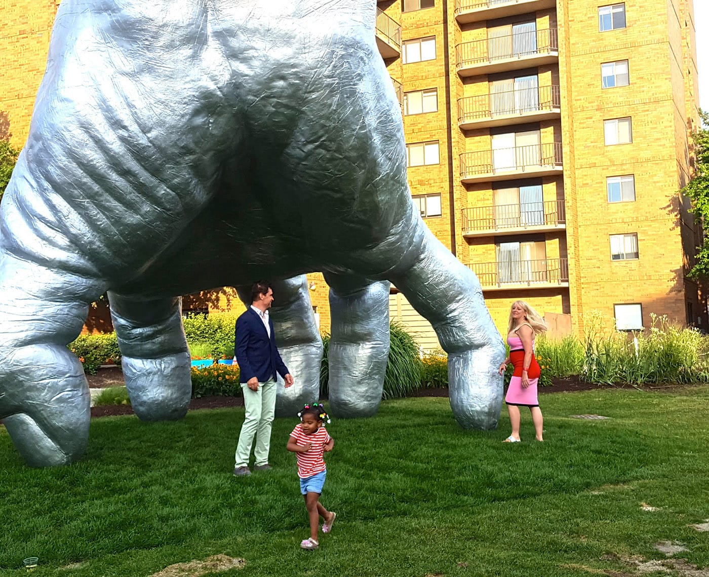 An art happening of this scope and magnitude cannot, of course, be summed up easily, but there are a number of outstanding moments. There are some gems to be appreciated in the context of regular art venues, such as Untitled (1999), a 12-panel, 8-color woodcut by Kerry James Marshall that wraps around three walls of a small gallery space within the Cleveland Museum of Art (as well as an adjacent gallery filled with sketches and other ephemera); “Brutalismo-Cleveland” (2018), a new commission by FRONT from Brazilian artist Marlon de Azambuja, which is perfectly suited to the glass-box gallery at CMA in which it is displayed; and the eerily post-apocalyptic vibe affected by Josh Kline at MoCA Cleveland, with his gallery full of fractured furniture and large children’s toys, sculpted in lighter-weight materials, but rendered to look like the cast-concrete, ashy remains of a conflict alluded to in the title, “Civil War” (2017). The Martine Syms installation at MoCA, with the artist’s signature blend of interdisciplinary information overload — via video surveillance, performance, video, wall text, and reconfigured mass media — was nearly impossible to receive in the context of a busy opening night event, but merits a visit to MoCA all on its own.