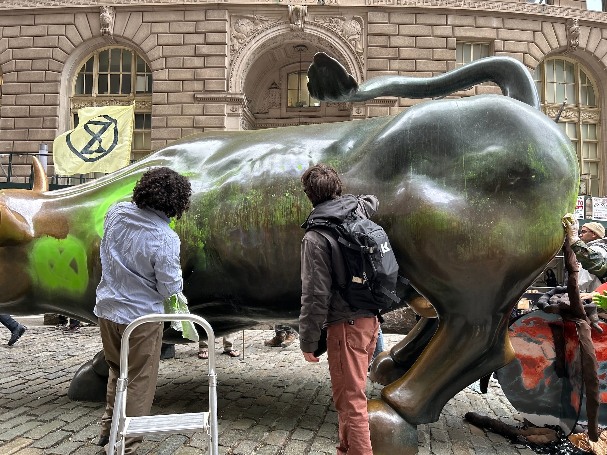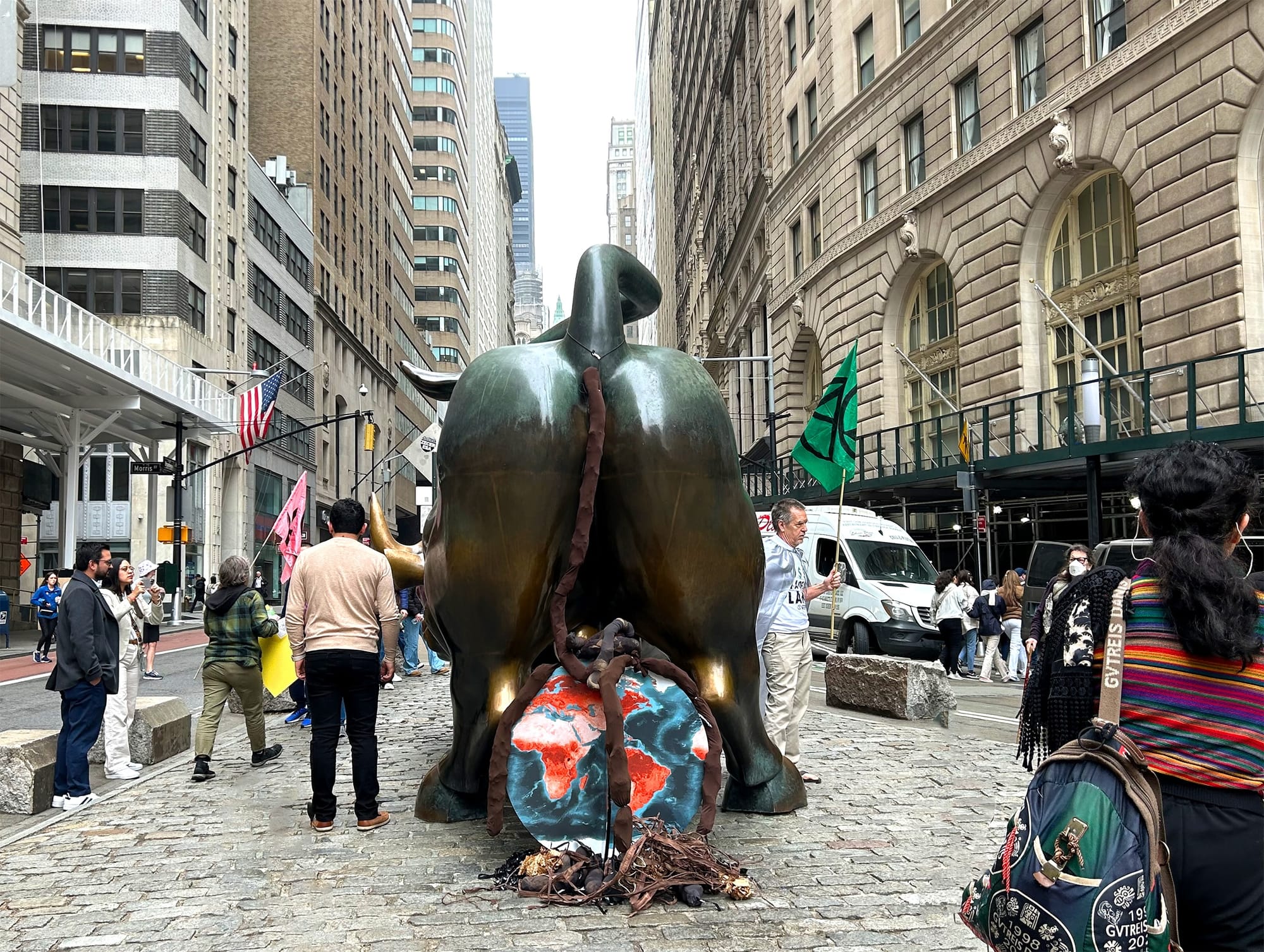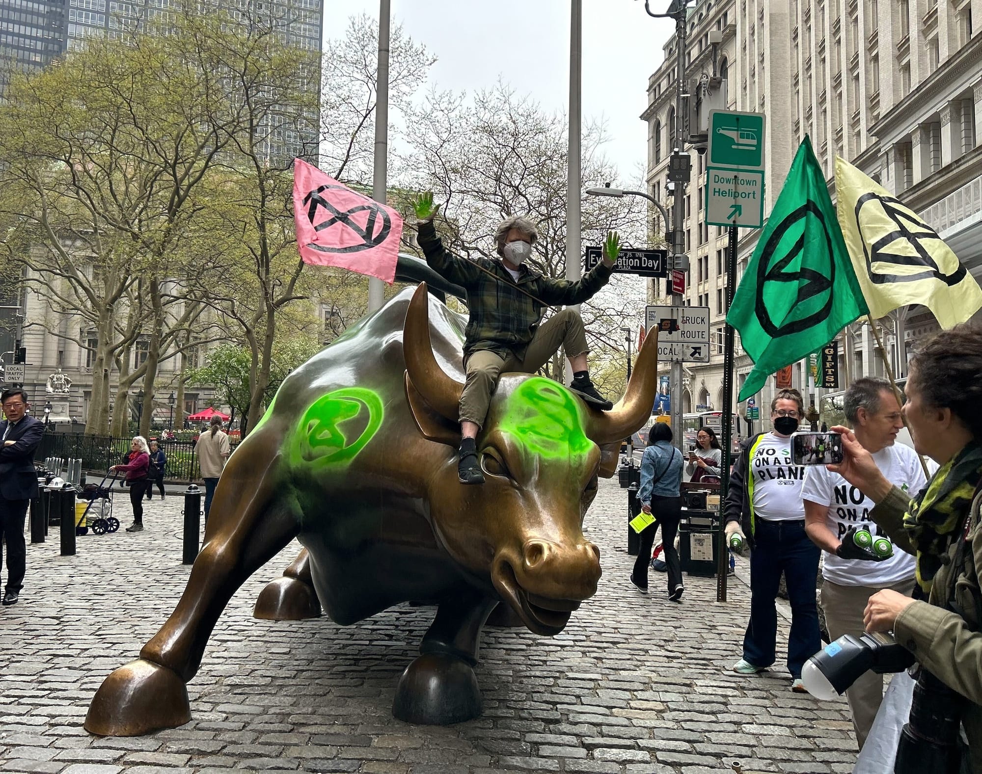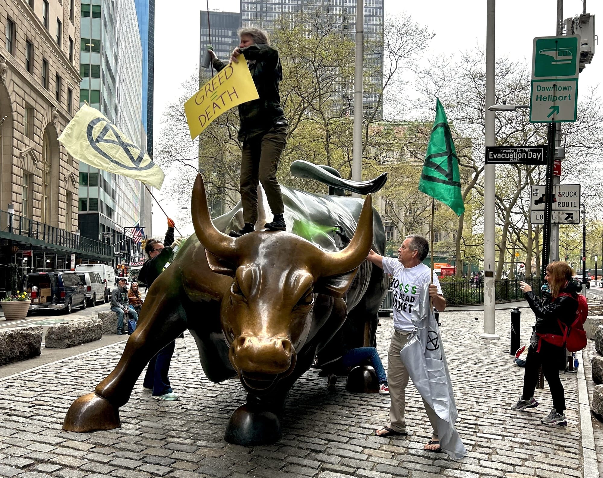 Climate Protesters Target NYC’s Iconic “Charging Bull” in Earth Day Protest