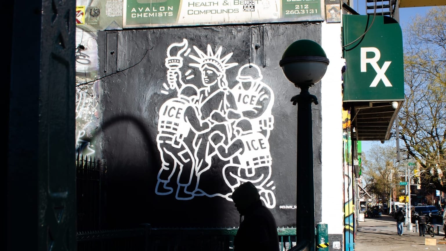 - Inspired by the subway art of Keith Haring, a new work of graffiti in Manhattan portrays ICE detaining the Statue of Liberty.