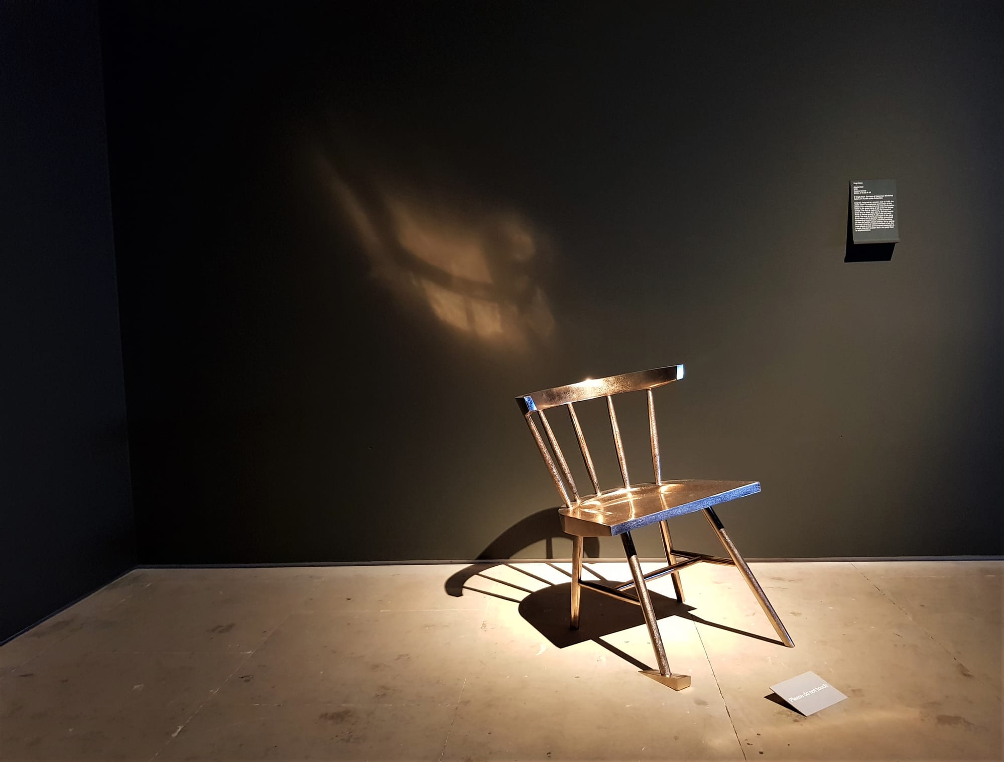 This work is inspired by the concept of acqua alta, an Italian term used to describe regular floods in Venice caused by high tides and warm winds. The chair is partially submerged by the rising flood waters, with a doorstop wedge symbolically representing the short-term, makeshift solutions we have for tackling climate change.
