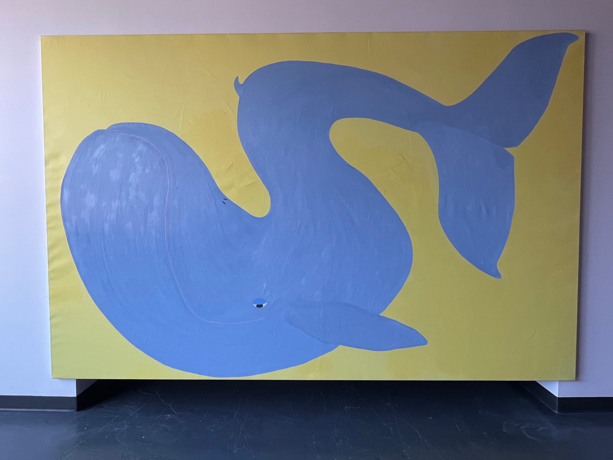 At first glimpse, The Gallery: WeWork (oralmoral) resembles a quirky incarnation of a millennial co-working space. There’s a jaunty painting of a whale by Michael Egan opposite Anna K.E. Tamada’s enormous satellite speaker with a sound installation at the entrance. A handful of artists tap away on their laptops on tables in a large common area as the aboveground Franklin Avenue Shuttle rumbles past.