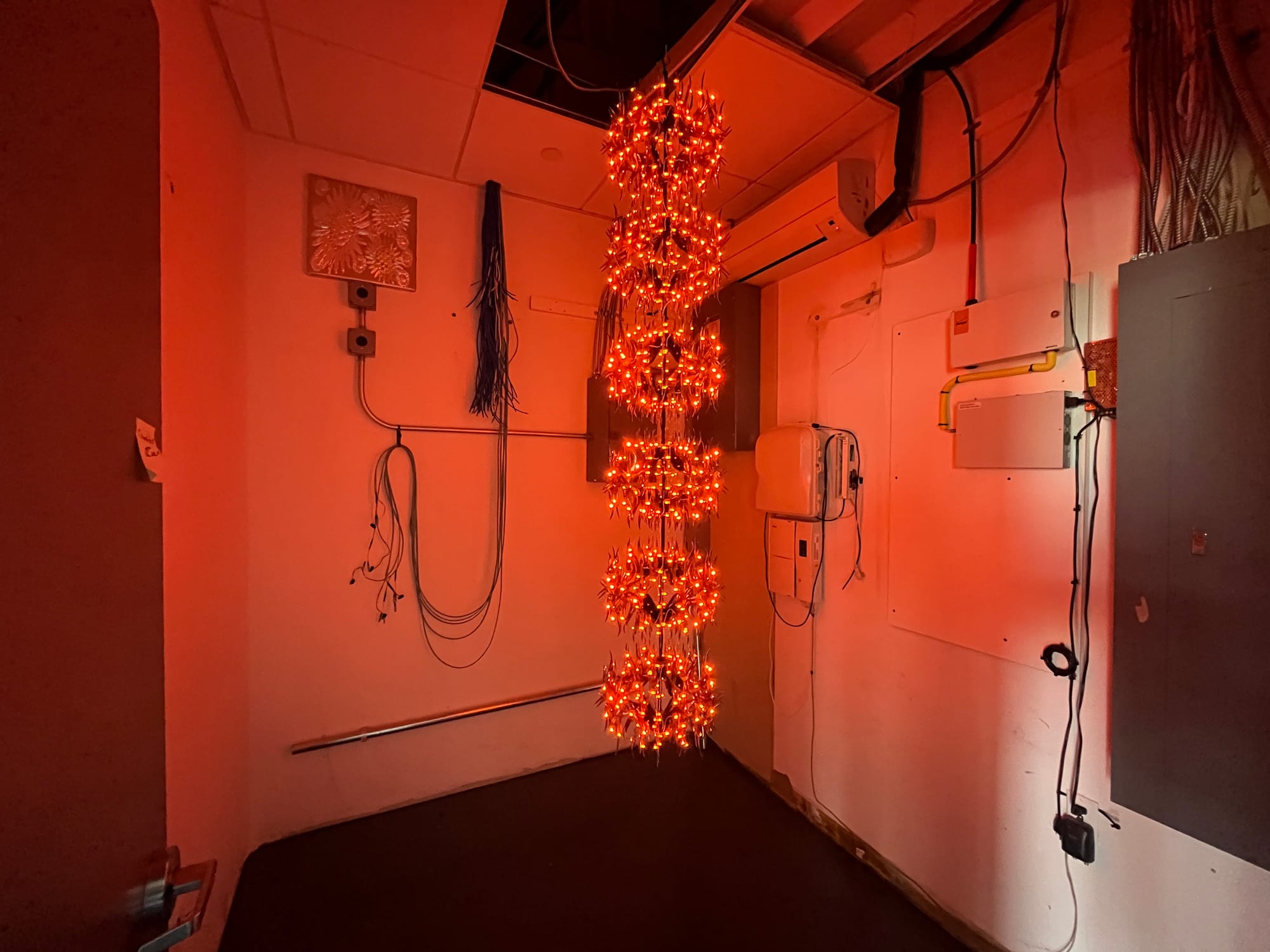 Meisenberg called several dozen artists who visited the space and agreed to create or ship site-specific works on short notice. After spending $350 on a U-Haul to transport some of the pieces, they completed the back-breaking install in a week for the April 10 grand opening, which 600 people attended, according to Meisenberg.