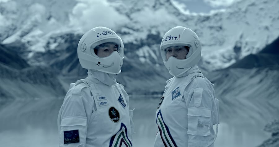Subash Thebe Limbu presents the framework of Adivasi futurism in the Indigenous science fiction audio-visual work Ningwasum in which protagonists Miksam and Mingsoma travel back in time from a future where interplanetary civilizations are living in harmony with the Earth. The film addresses land sovereignty, differing notions of time and memory, climate change, and folkloric ritual.