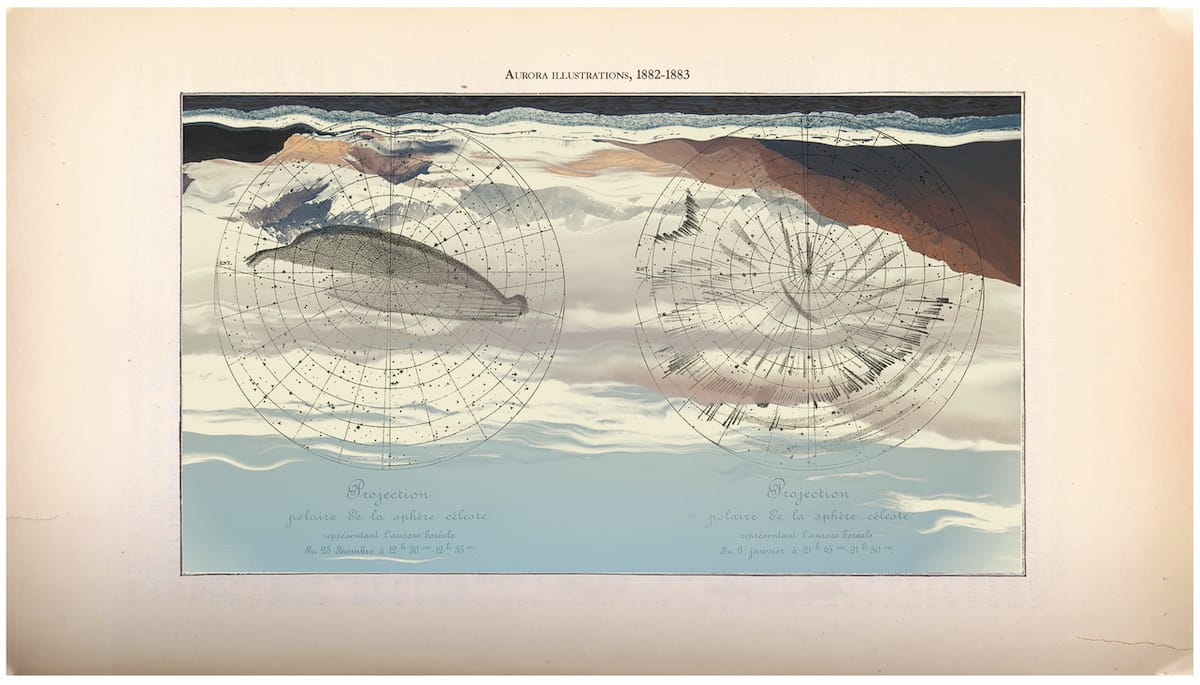 We Are Opposite Like That is an expansive multidisciplinary series encompassing video, performance, print, and poetry. The connections that emerge tell a story of the entanglement of places, ideas, and oceanic currents. They recount “the tale of the omnipresent anxiety in Victorian England” that the ice of the Arctic would melt into the British Empire and render it a frozen wasteland. The mood is befitting to present-day climate grief, accompanied by dissonant soundscapes that undulate with the timber of ice. David Soin Tappeser, Soin’s collaborator, graphed the temperature differences between the Victorian era and present-day as well as the longitudes and latitudes of Soin’s journey. He then used these metrics to compose the tempo and dynamics of the string quartet. In accompanying sound installations, sounds also are recorded from Antarctica, the Arctic, and Delhi, such as “the echoes of stones skimming on frozen lakes,” and the tinkling of a temple dancer’s anklets.