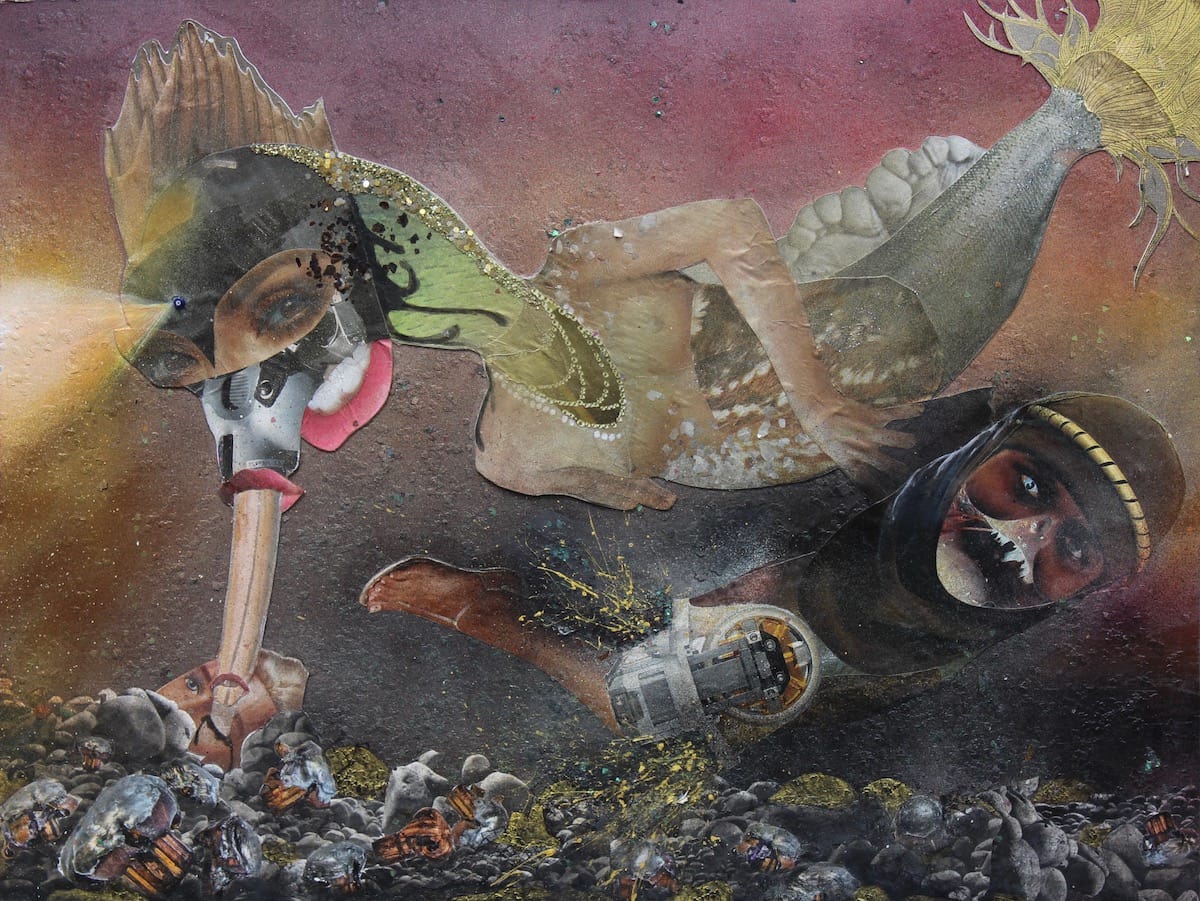 Osheen Siva activates a socially-engaged pop surrealist style of artwork she frames as Tamil Dalit futurism. Her site-specific and digitally generated works present viewers neo-mythologies and speculative world-building in the form of futuristic oases and empowered figures.