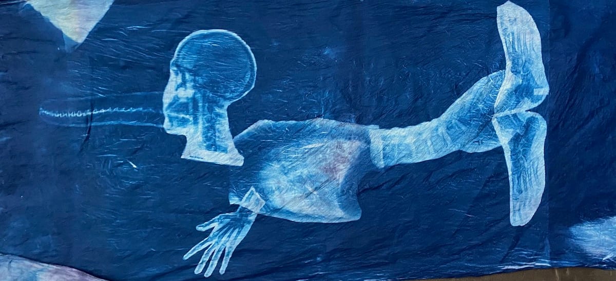 In recent works, Bhutto merges x-rays of his own body and bones with those of a dolphin in a “journey to oneness,” indicating the similarities and differences between human and aquatic species, and the fluidity between the human body and an embodied, universal ocean.