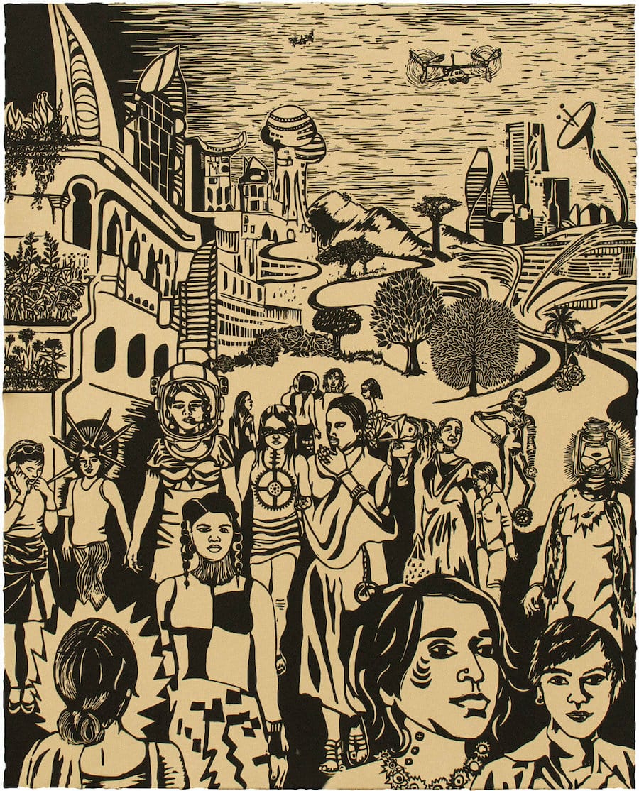 Artist Chitra Ganesh presents a portfolio of 27 linocuts that storyboard the sequence of “Sultana’s Dream,” paying particular attention to the roles of the individual and the collective in effecting change.