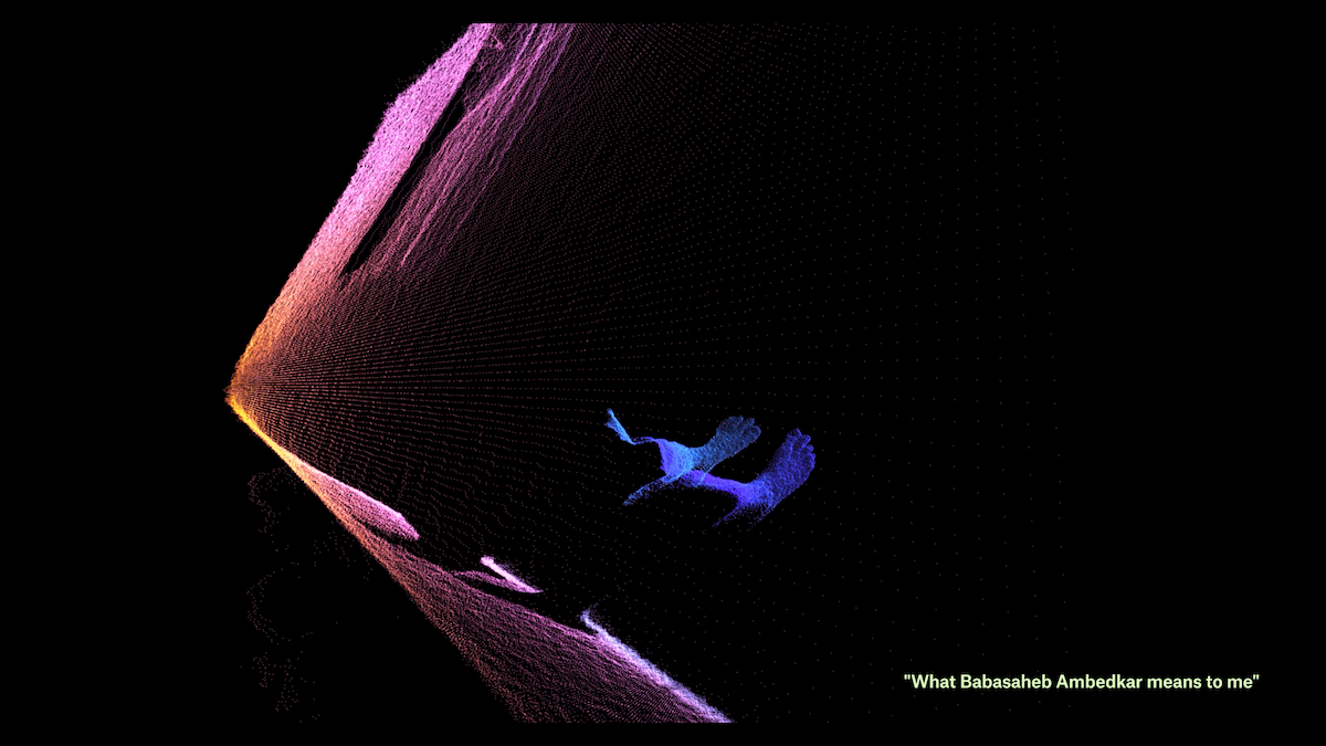 The artist makes poignant parallels between the resistance of Black, Indigenous, and Dalit communities by engaging the liberatory teachings of Audre Lorde, bell hooks, Fred Moten, Stephanie Dinkins, B.R. Ambedkar and Mudnakudu Chinnaswamy. The film oscillates between English and Kannada, “drawing a line between the perpetuated colonization of Hindi on non-Hindi speaking majority people as Hindi is wielded as a tool by the Hindu right to make falsified assertions of homogenous unity,” in the artist’s words.