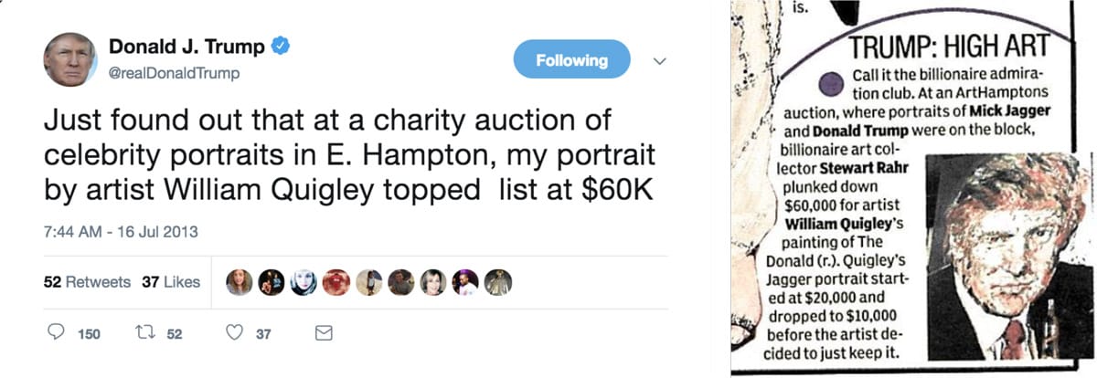I don’t think anyone would be surprised that a man who loves to brag about absolutely everything, and is as thin-skinned as anyone, could have staged a fake bid on his portrait.
