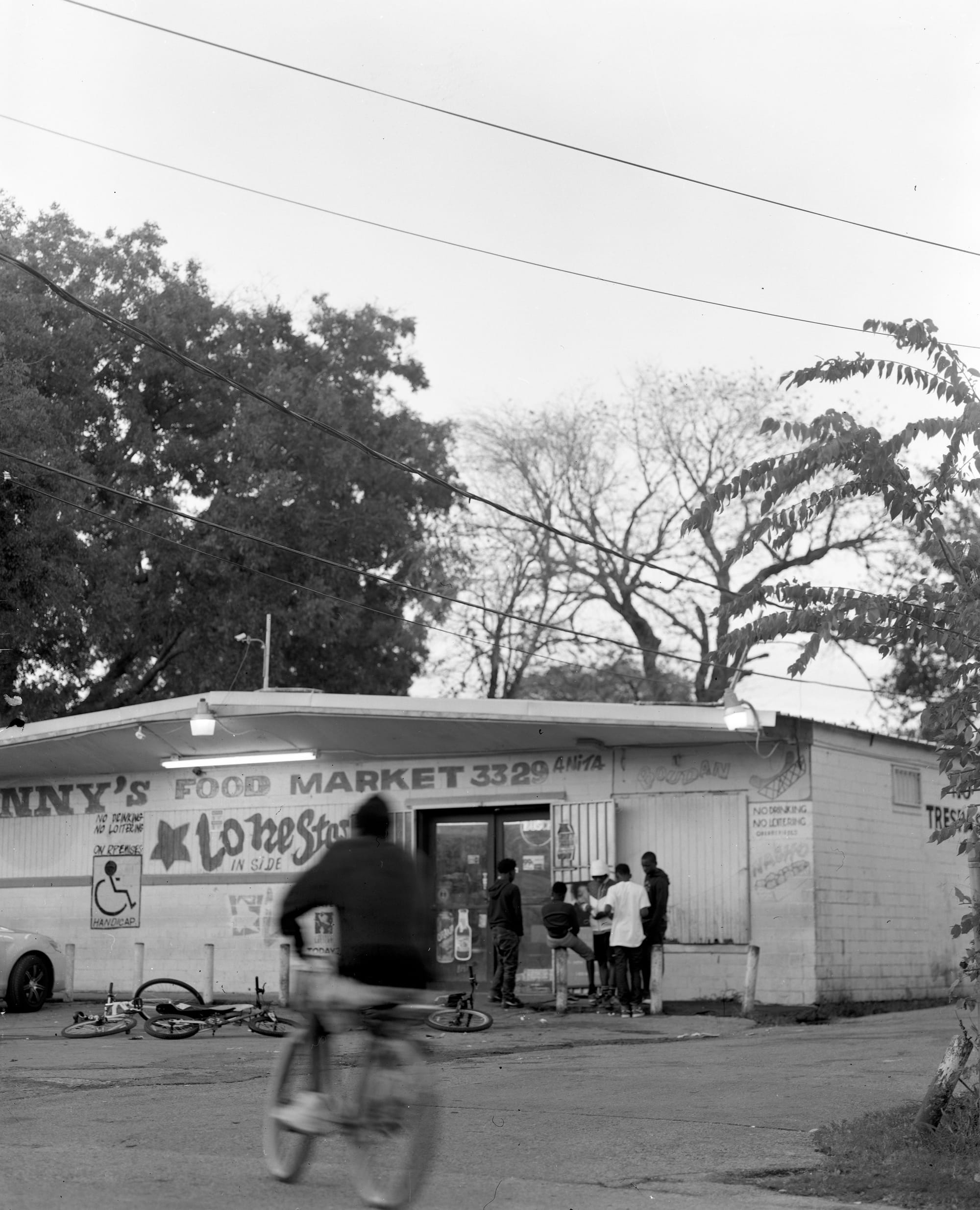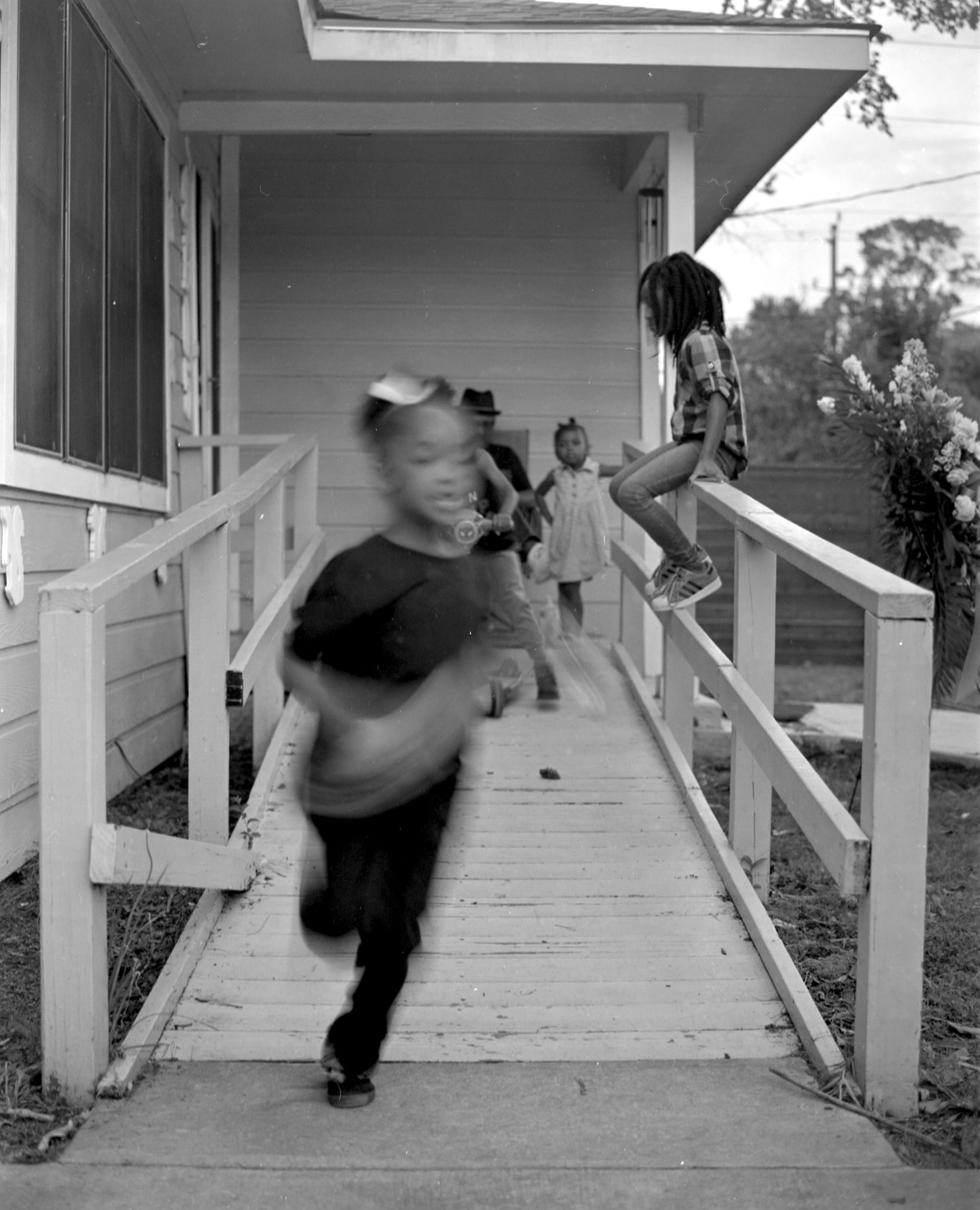 “[Deal’s images] are part documentary, part portraiture, part snapshot and they flourish in that liminal space between individual and communal memory,” writes Reece. This is apt framing for Deal’s work, but it sidesteps the pitfall of communal memory, which is that it lacks a real point of view, a certain sharpness. Deal’s work encourages the viewer to see everything as part of the picture, because to his eye, everything is beautiful. Maybe asserting pride of place is impactful enough as a statement — like many lower-income neighborhoods, Third Ward is increasingly threatened by encroaching developments, in this case the University of Houston — but somewhere in the blur of all this black and white, a place that Deal obviously sees in so much color starts to turn a bit grey.