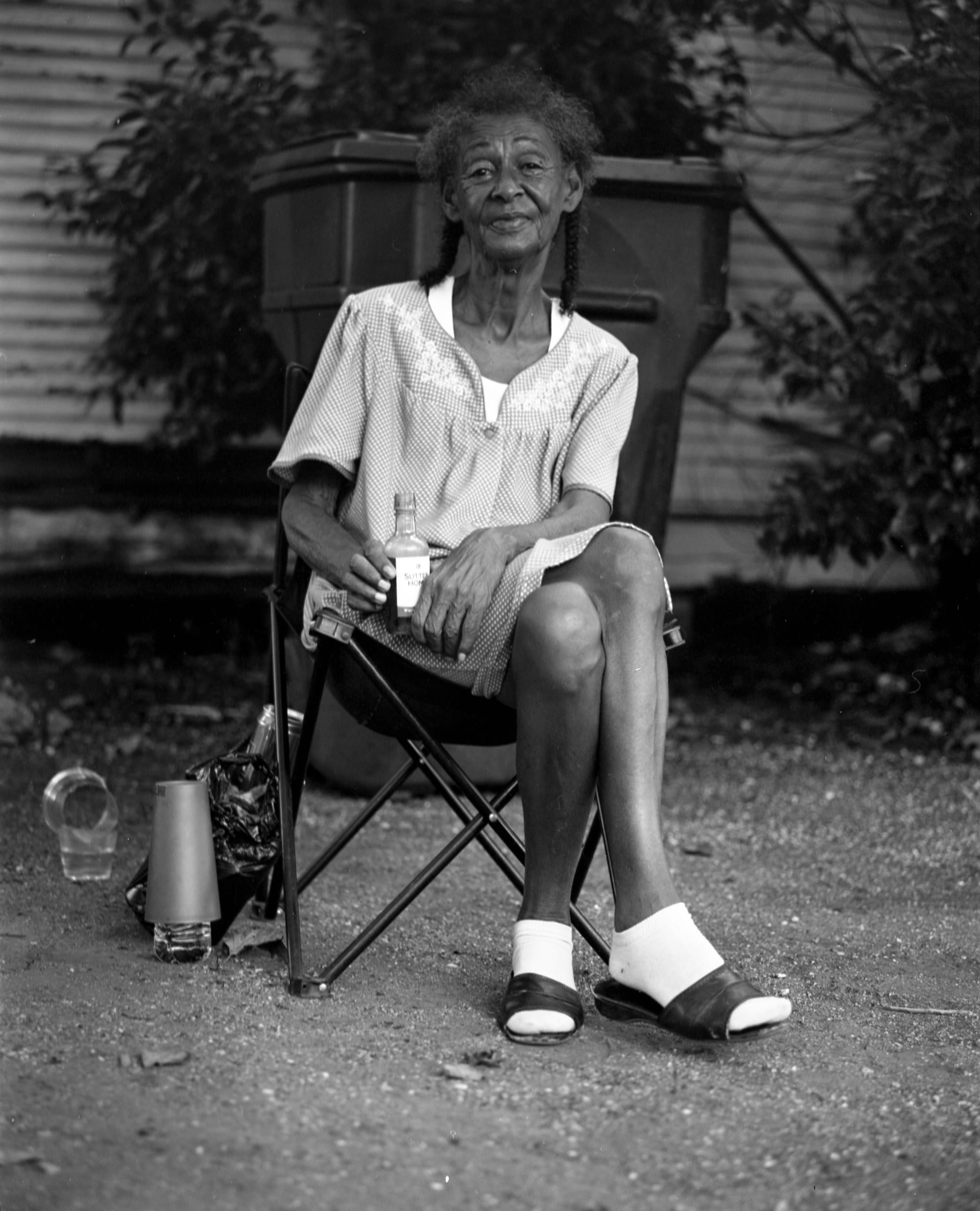 "Litigation" is a choice phrase for this collection of black-and-white images, which largely document rather than compose scenes. Some people pose for portraits, but even the intentionally staged works feature informality of presentation and setting. Some of them seem extremely offhand, capturing almost arbitrary subjects blurred by motion or set at slightly skewed angles — a random truck parked in a lot at night, children playing, a trash-strewn residential street, a woman by the window, a bike tipped wheels-up for repair, sunlight filtering through overgrown backyard foliage. It would be difficult to argue some of them as terrific standalone images, but Deal seems to be offering them into the record as evidence of something beyond superficial beauty. Something that is not just beautiful, but beautiful still, in spite of the difficulty.