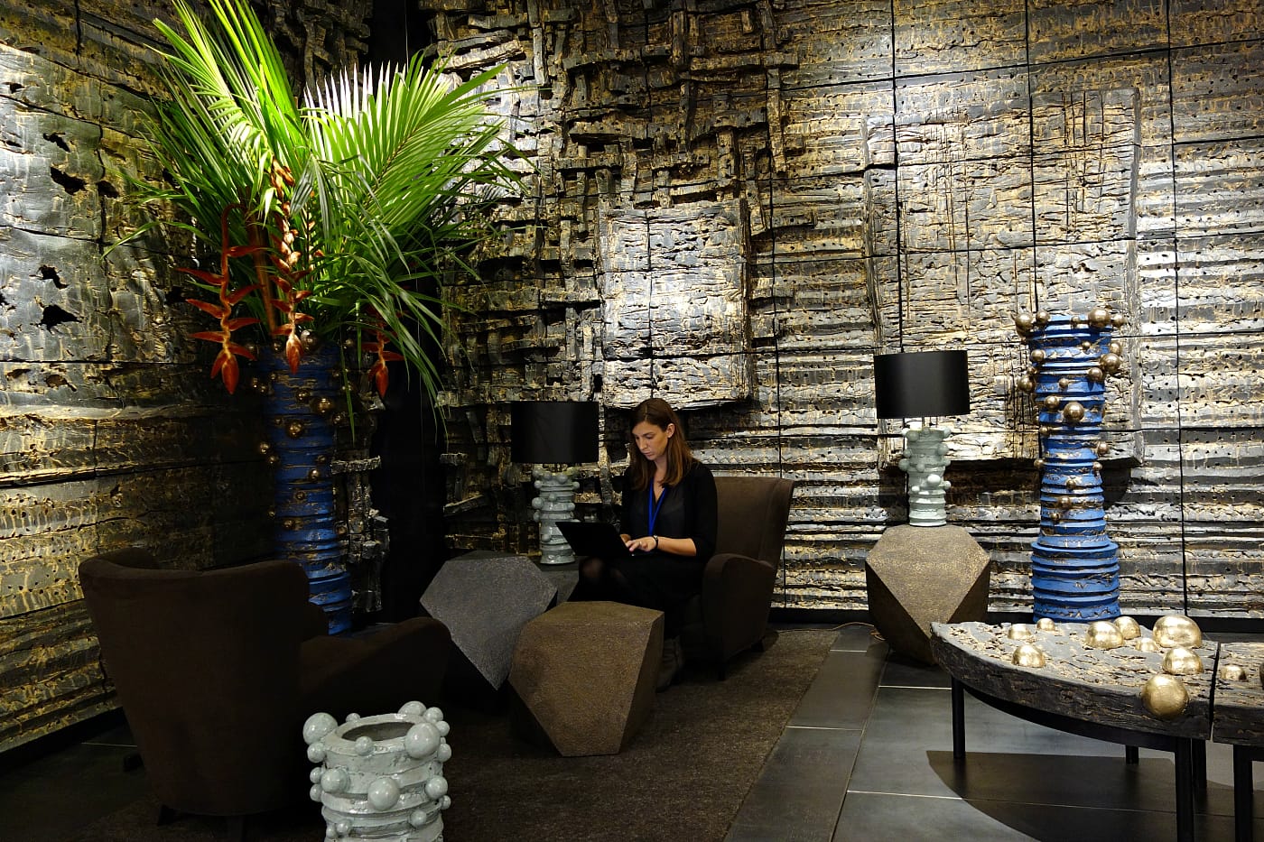 Flavor Paper and Um Project’s interactive wallpaper that uses conductive ink to activate lights, fans, and other features