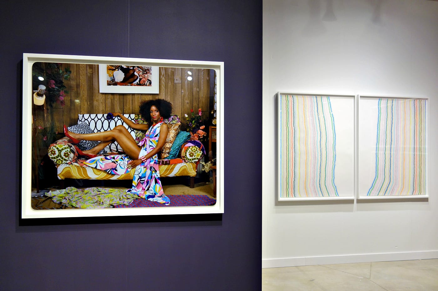 Photograph by Mickalene Thomas (at left) on view with Yancey Richardson Gallery of New York