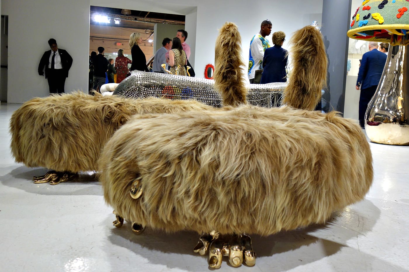 Hairy seating by the Haas Brothers, on view with R & Company of New York at this year’s Collective Design (all photos by the author for Hyperallergic)