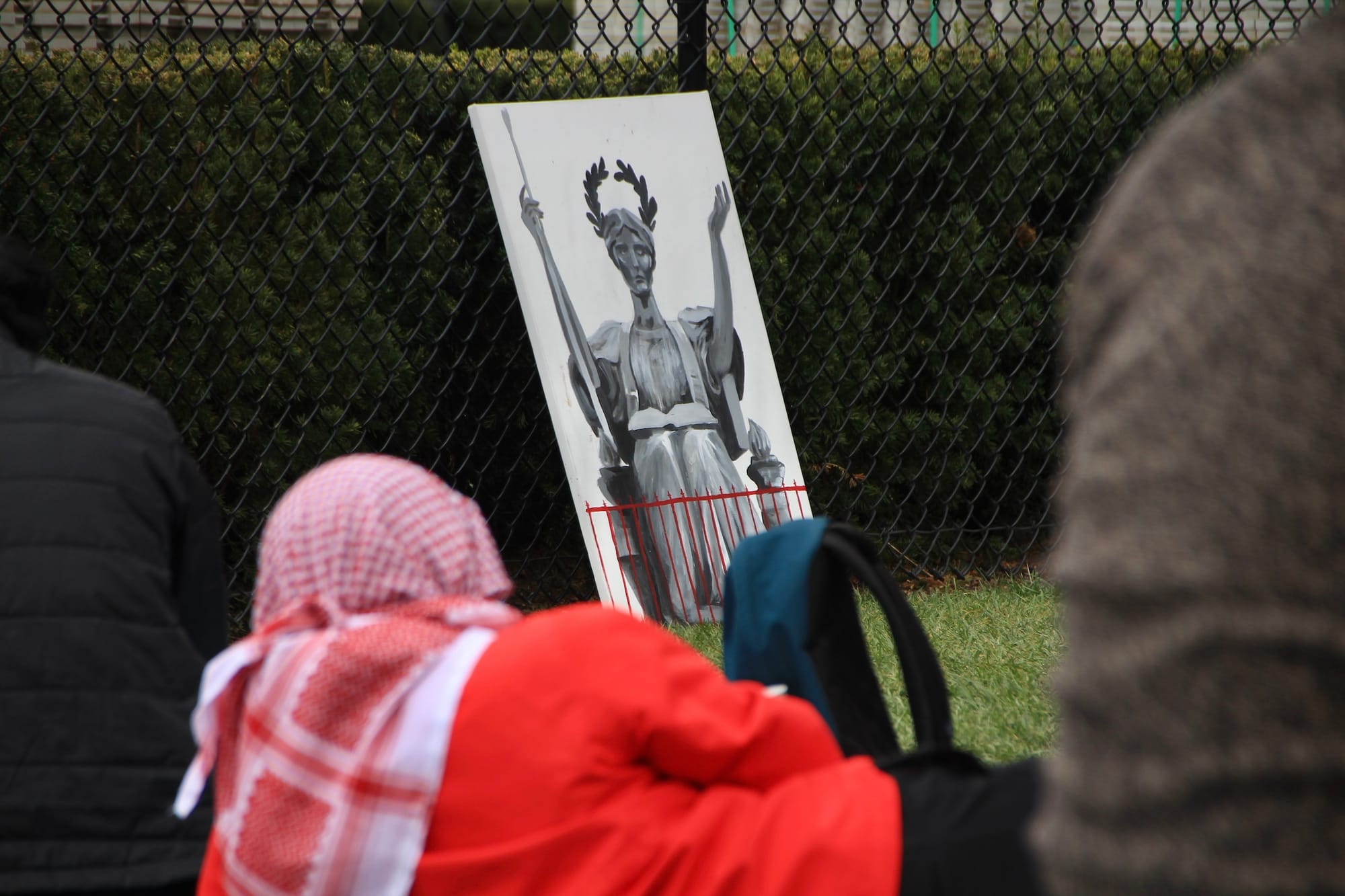 Around 10am, campus public safety staff began to prevent additional students and faculty from entering the lawns. When asked by Hyperallergic whether a reason could be provided, a public safety officer who refused to share their name declined to answer.