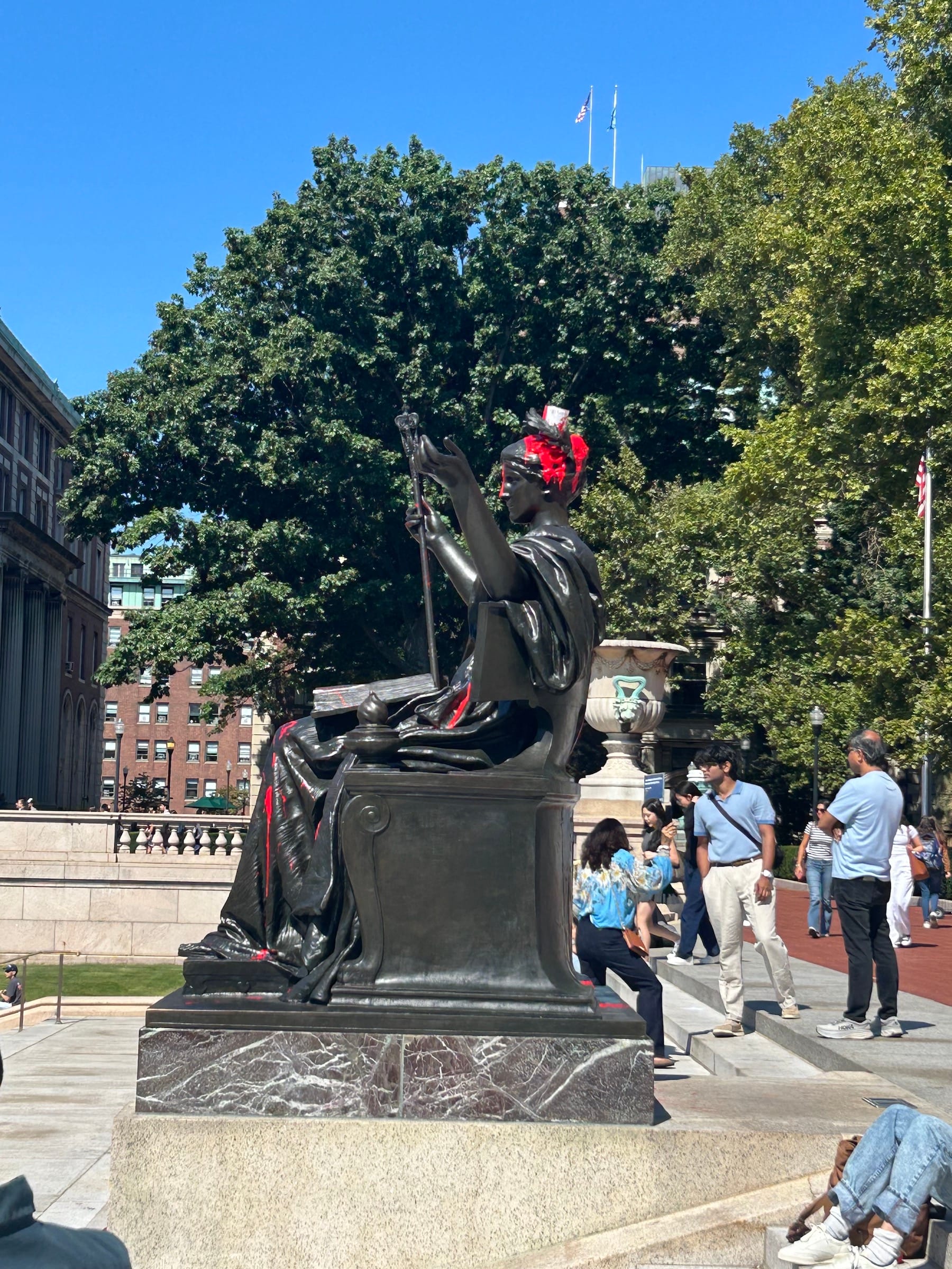 Columbia University’s “Alma Mater” Sculpture Drenched in Red Paint