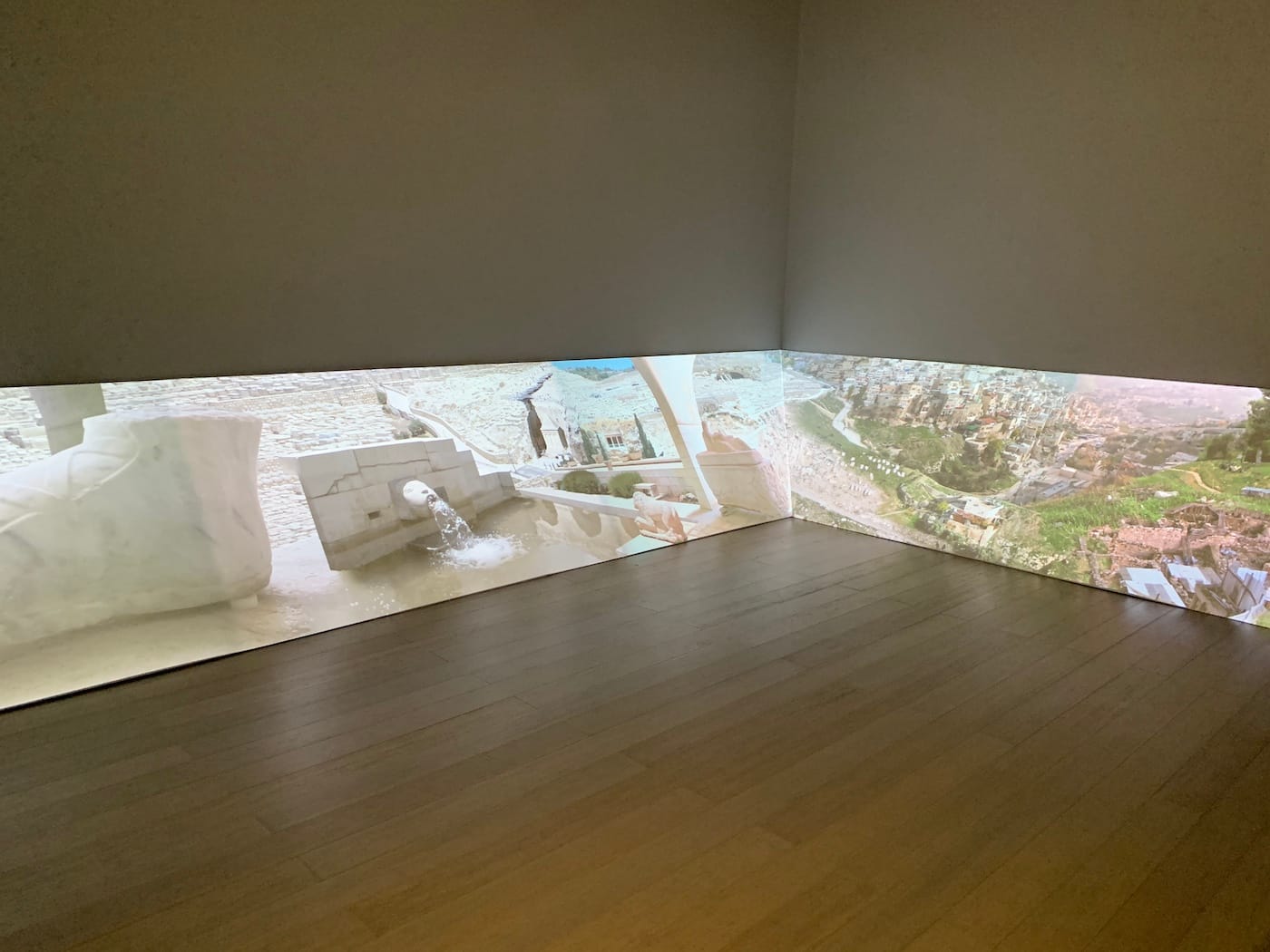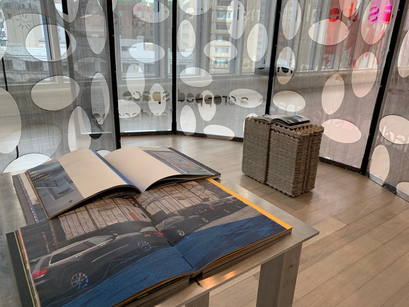 Another personal highlight was Rafael Domenech’s “Notations from an American landscape” (2017–19), which presents itself as a reading room of massive cutouts. What the artist has accomplished here is an ode to geographical dislocation, a massive photomontage of how urban landscapes are as much generators for creativity as they are stifling places to live. Aesthetically, the images within Domenech’s makeshift art books bear resemblance to John Baldessari’s Overlap and Junction series, which also combined photographs in ways that connect compositional elements and disparate realities.