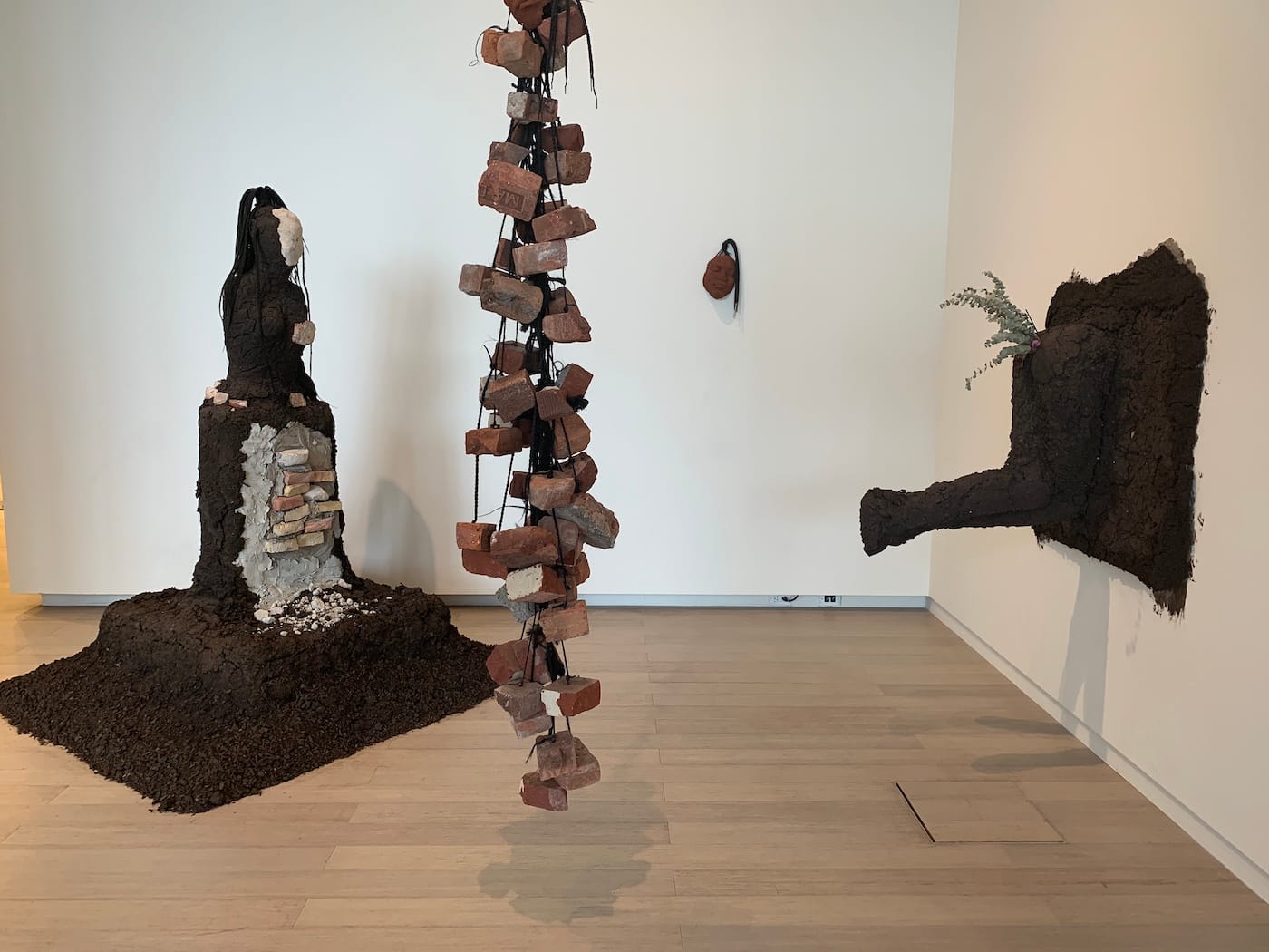 History haunts the halls of the Wallach Art Gallery and artists like Chiu dive into their ancestral pasts. Kiyan Williams presents a hauntingly poetic tribute, called “Untitled (For My Great Great Great Great Great Grandmother Salmoy Miller who was Emancipated from slavery in 1834)” (2019). The work is accompanied by three other related pieces, all of which use dried soil as a foundational material. The result looks dredged from the ground — the dead resurrected as sculptures to tell their story. It’s an approach not unlike what artists, including Wangechi Mutu, are serving at this year’s Whitney Biennial.