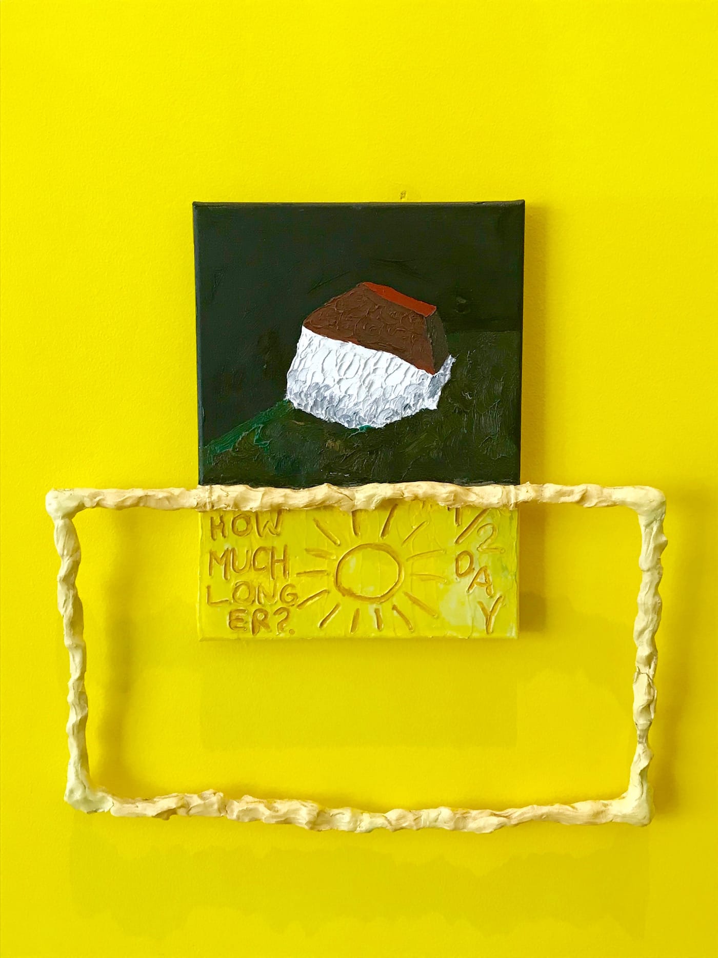 Nearby is Emma Thomas’s work, an obsessive arrangement of ropes and things that look like ropes. Camouflaged into its surroundings, one such rope slinks down from the ceiling, changing from off-white to a bright blue that matches the metal stool it coils around. More lightheartedly, Thomas has included a mid-sized kinetic sculpture that jiggles like dusty, rubbery jello. Yes, that’s a disgusting description — but I’m into it.