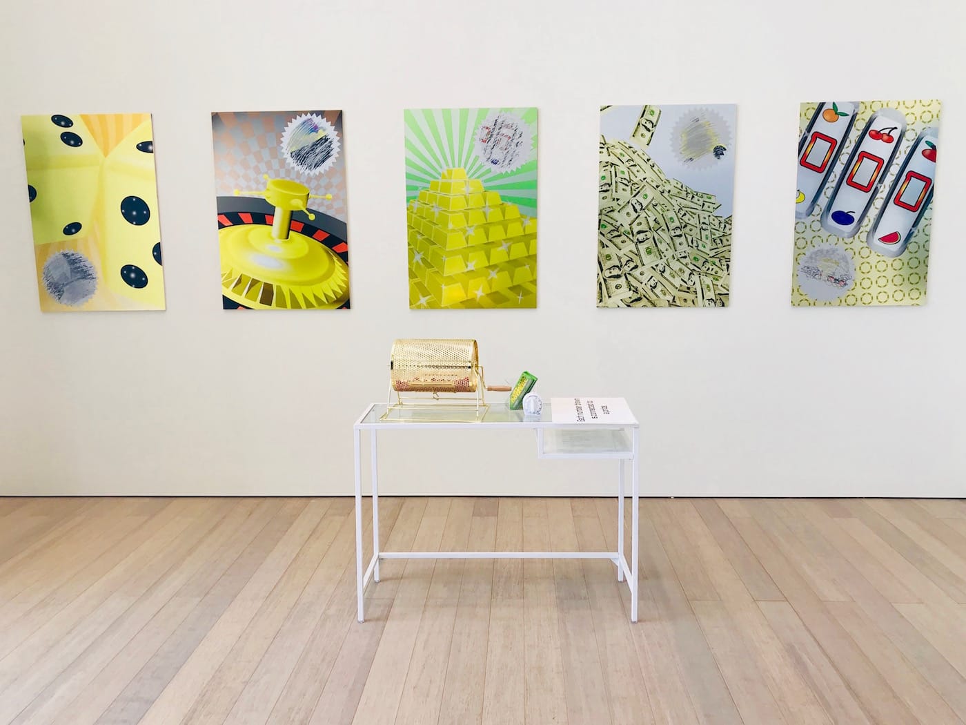 In the Wallach Art Gallery’s massive two-floor space in Columbia’s Lenfest Center for the Arts, curator Deborah Cullen has allocated each student sizable square footage to demonstrate her or his skills. Most artists have chosen to replicate an aesthetic reminiscent of Spring Break, building full installations around their work. Clearly, young contemporary artists are using the sprawling pop-up art show as a model for exhibiting work and driving interest.