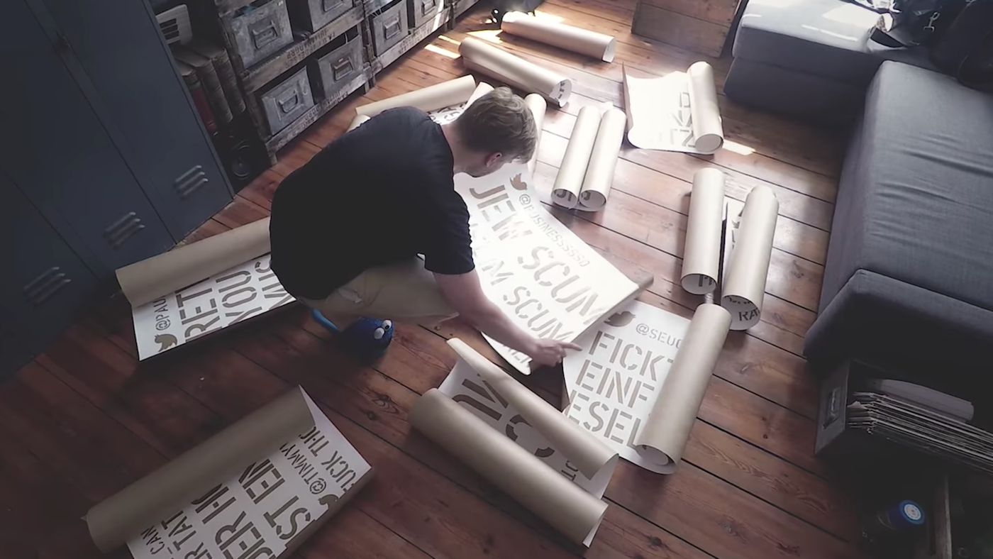 After Twitter refused to delete numerous hate tweets, Shahak Shapira, a Berlin-based Jewish comedian and author, spray painted them outside the company's German headquarters.